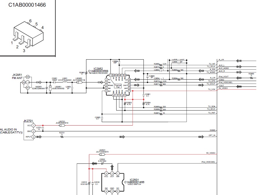 IC-2501 is an 6 pin device on the main AV board. Panasonic number is C1AB00001466 but in order to track this down you need a real number which should be stamped on the top of the IC