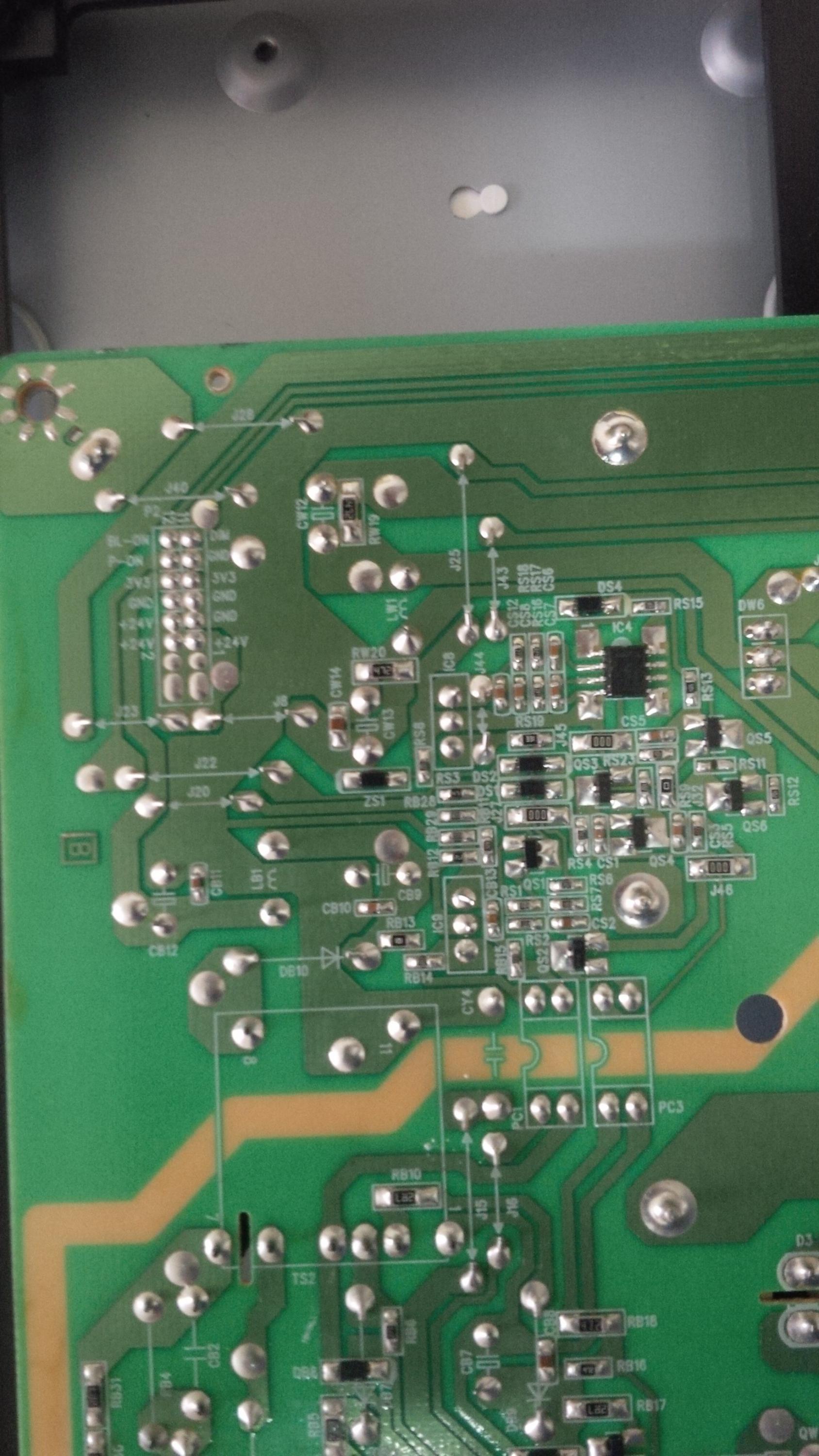 Anyway, a friend has this TV with the above mentioned power supply board which has no standby voltage, nor any other voltages leaving the board.
