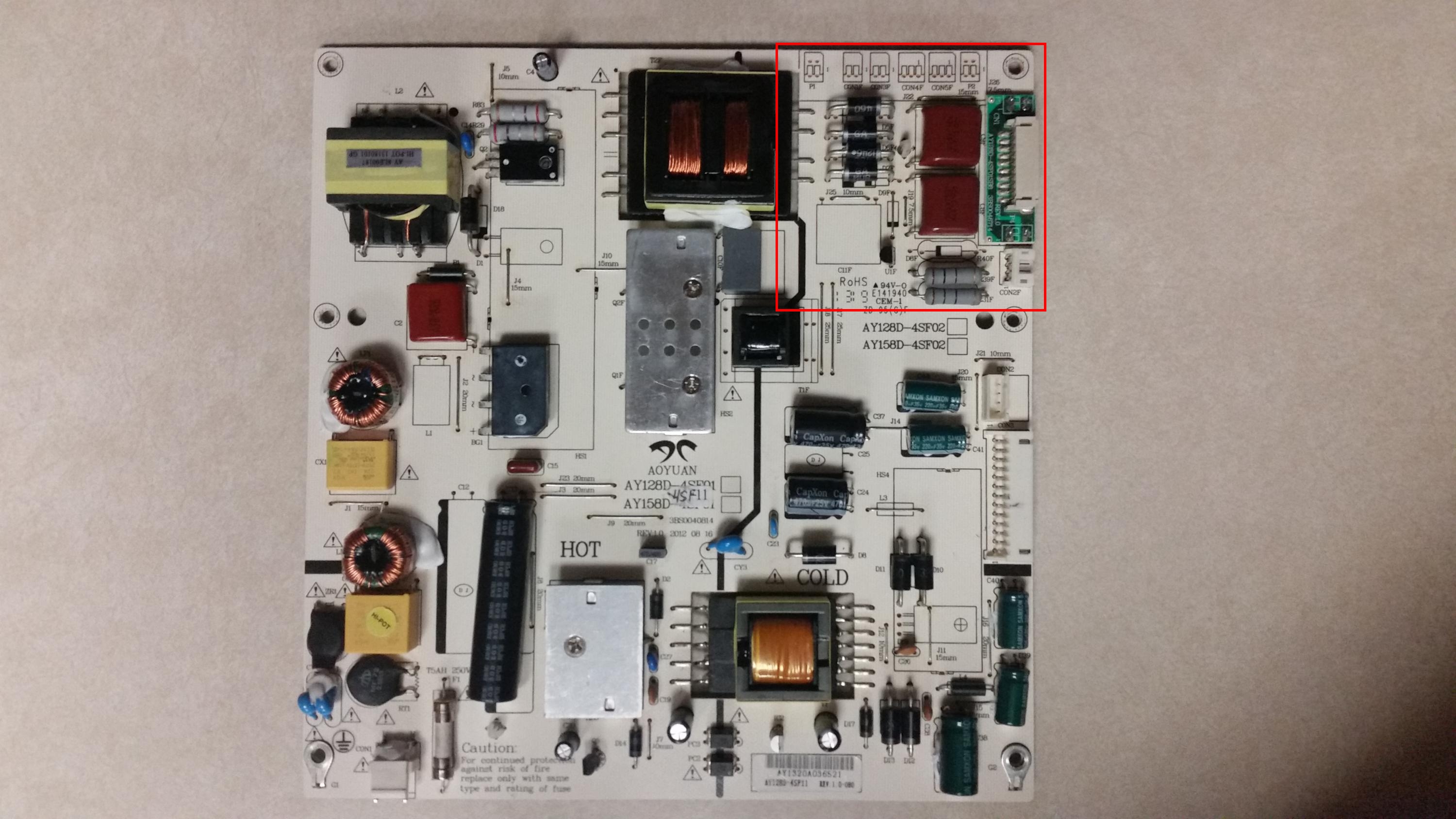 What I Have Done So Far: 1) Removed the back TV cover to expose the boards (Power Supply, Tcon, and Main), 2) blew out any dust and cleaned all connections, 3) Noticed that the LED backlights are fed from two separate connectors...