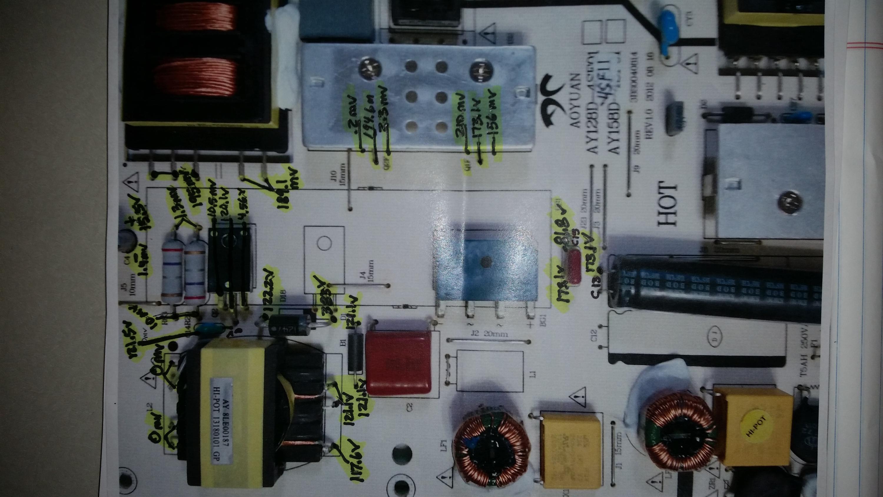 Overall Issue: When TV is turned on, backlights all come on for about 10 seconds, then all go out. There is sound and there is a picture on the display (obviously hard to see without backlights, but it is there).
