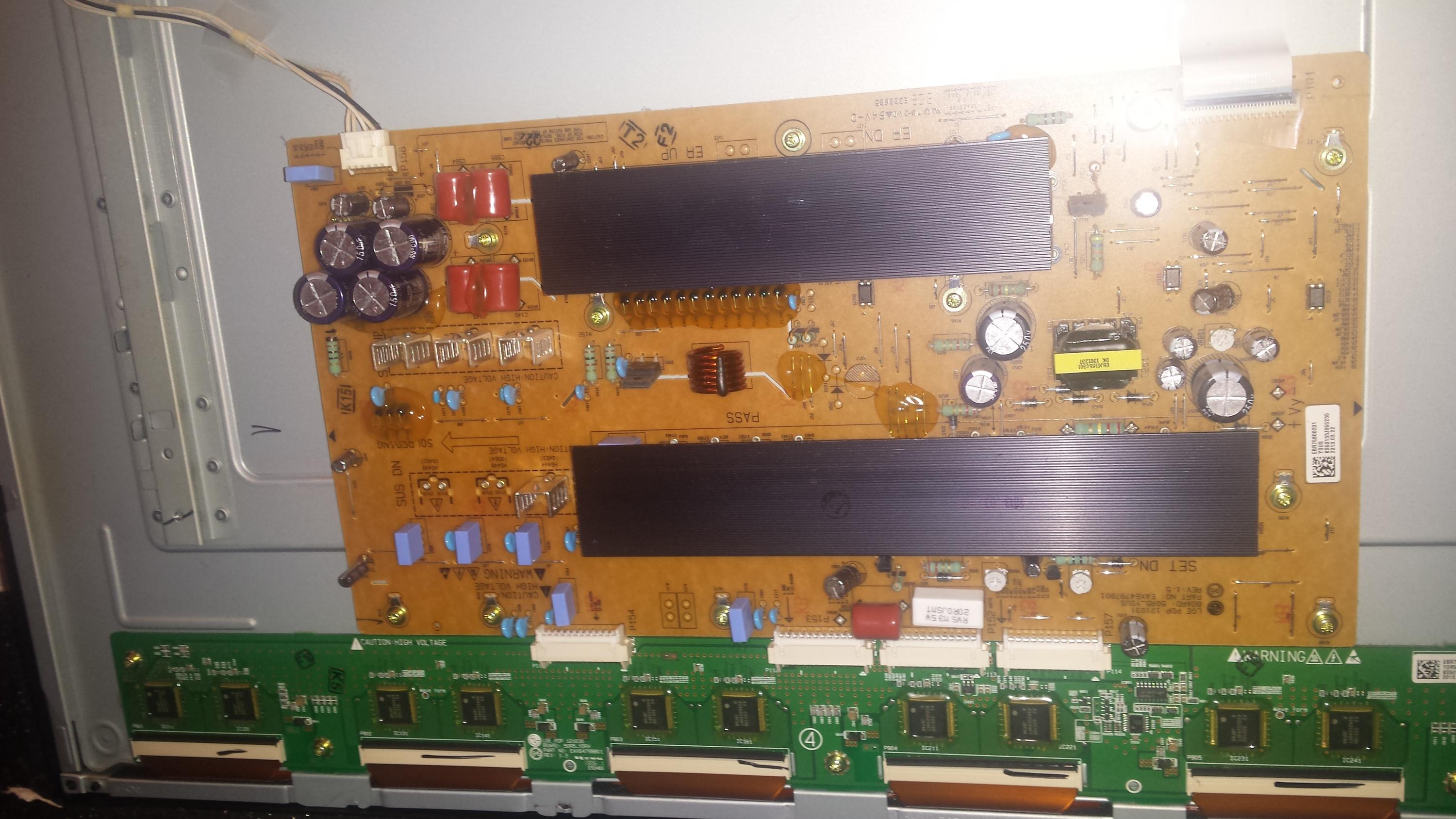 Have you started taking voltages ? Check the Vs and Va also check the lower voltage rails going to the Mainboard they will be listed what pin should have what voltage in a little chart near the connector. Let us know what you find.Please Do Not PM My Page Asking For Help Badcaps Is The Place For Advise, Page Linked For Business Reasons Only. Anyone Doing So Will Be Banned Instantly !