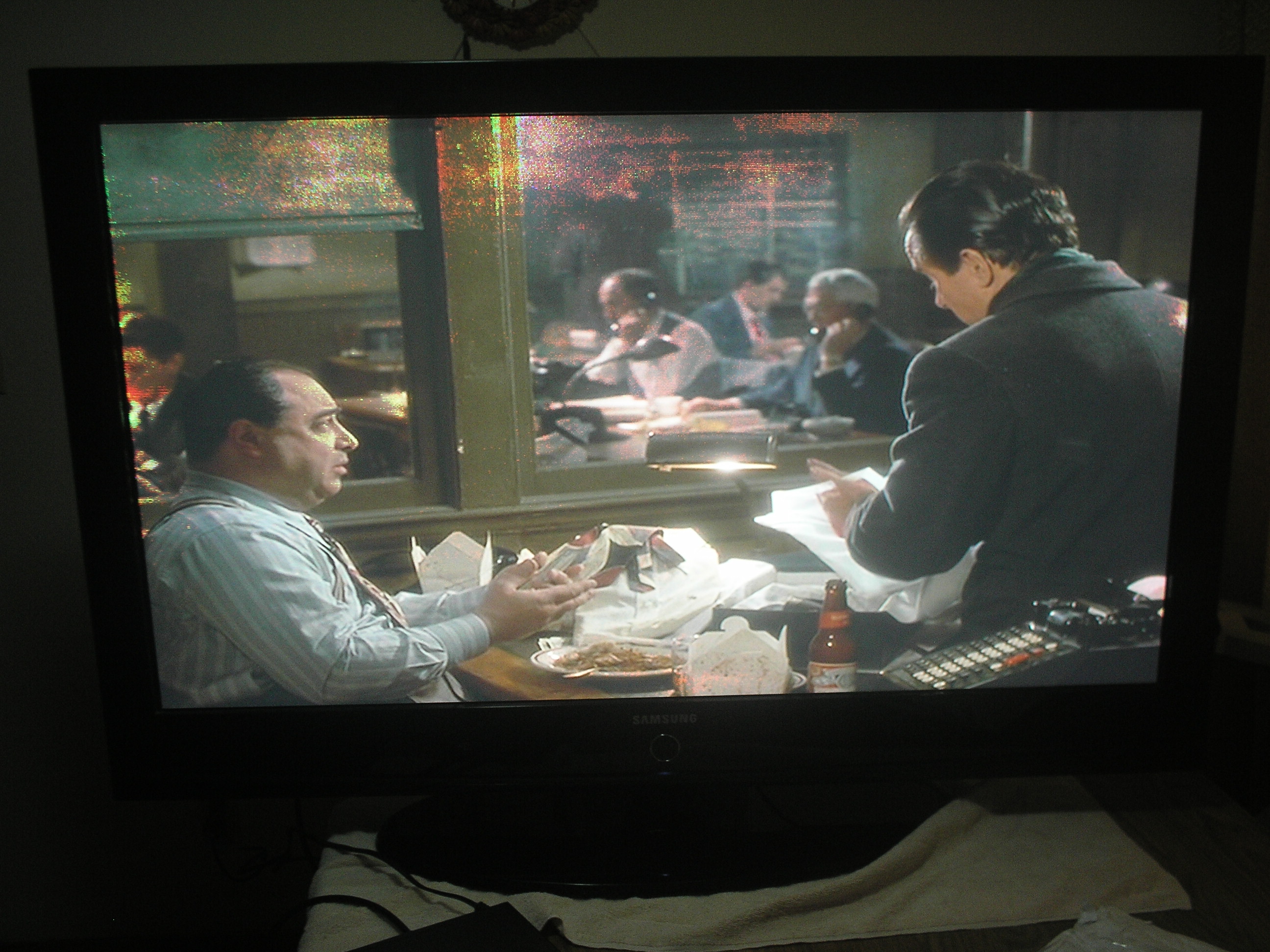 When at its worst (set cold) you can almost see images floating in the colored sparkles. That makes me think interference of some type. I am pretty close to our local translator but with no ant attached? And why would it change after set warms up.