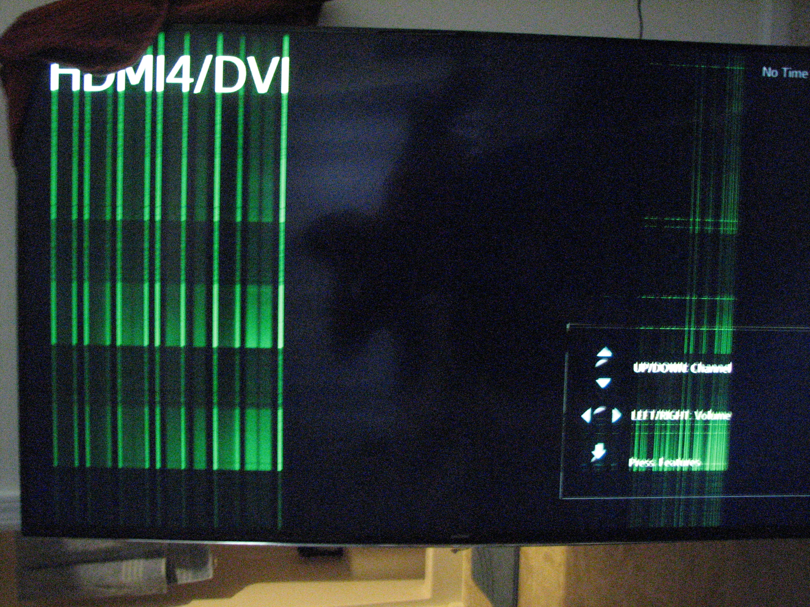 Friend sent me this picture of what their 60" Samsung from 2015 is doing. I didn't have any luck getting rid of a vertical stripe in another TV that developed one so I'm not too excited about trying to fix this one. It's mine for the asking; wish it had a dead power supply or bad backlights instead.