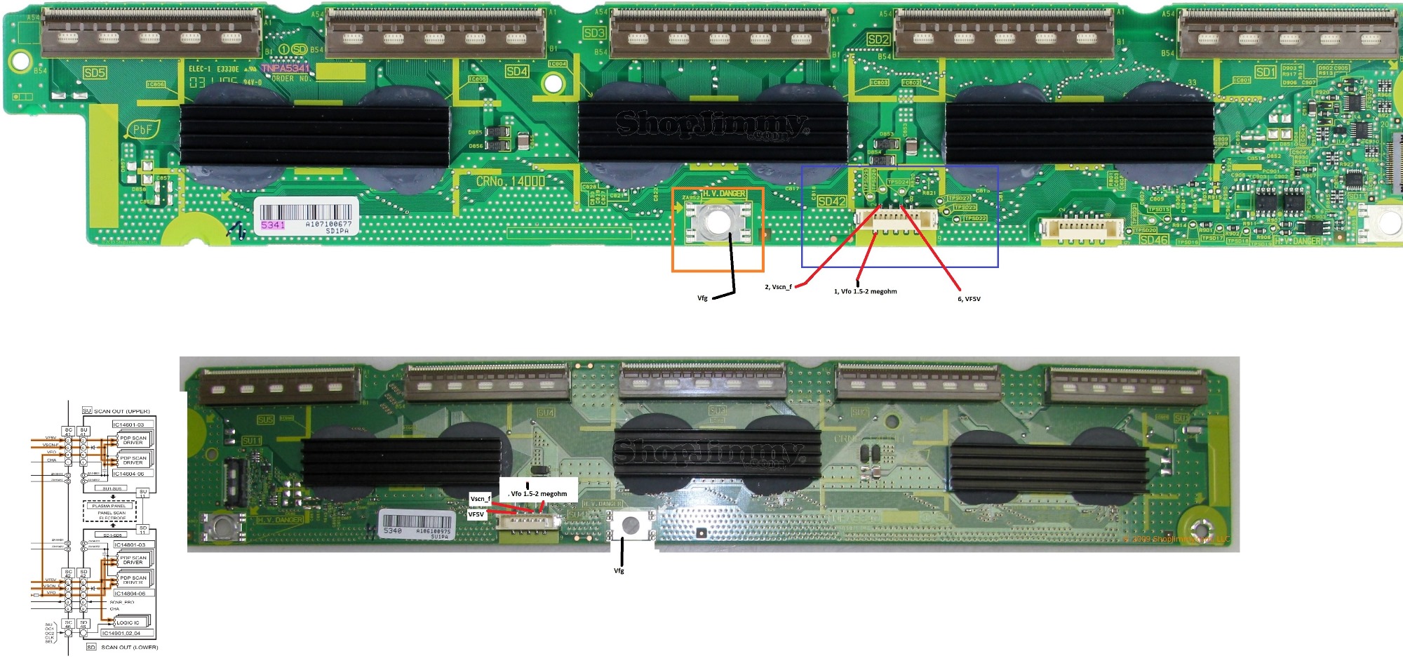 Hoping someone can help me. My Panasonic TC-P55ST30 popped on me this weekend before the ACC Championship game. It made a very loud pop noise before the display went out. I pushed and held the power button and it blinked 14 times before repeating. I disconnected the SC board and put power back and it blinks 7 times. I tried checking the boards using the video here: https://m.youtube.com/watch?v=iHBIiRxhe0w