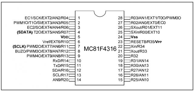MC81F4316, ABOV Semiconductor, 8-bit Single-chip Microcontroller, 28-pin, 16KB flash, 512B RAM, 2.2V - 5.5V @ 4.2MHz: