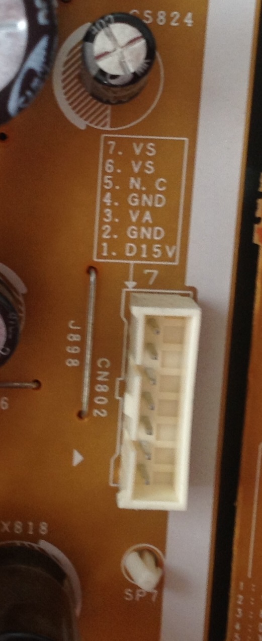 The power supply module is marked P51FF-DSM. I get 0V reading between GND and D15V in connector CN802 (I get 0V between GND and any other pin in that connector)