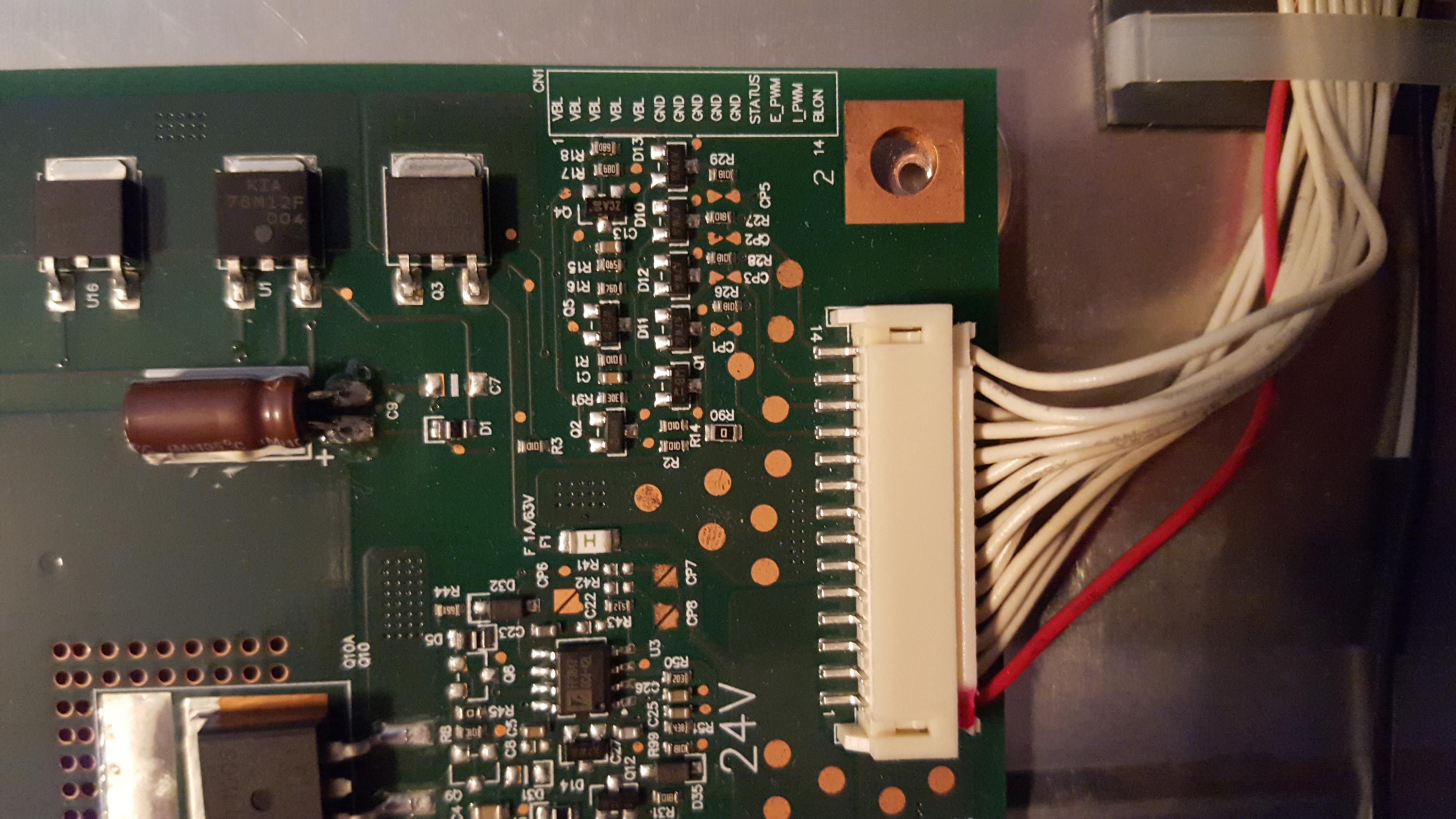 Ok, Ive attached another pic showing a closeup of the inverter board. With the TV off, BLON shows 0V DC, when the tv is switched on it shows 3.15V DC and remains unchanged regardless of whether the backlight is on or off. When the TV is switched off and put into standby the BLON voltage drops back to 0. Any thoughts or suggestions? I'm really confused by this and ive tried a different backlight inverter board but still the same results.Comment