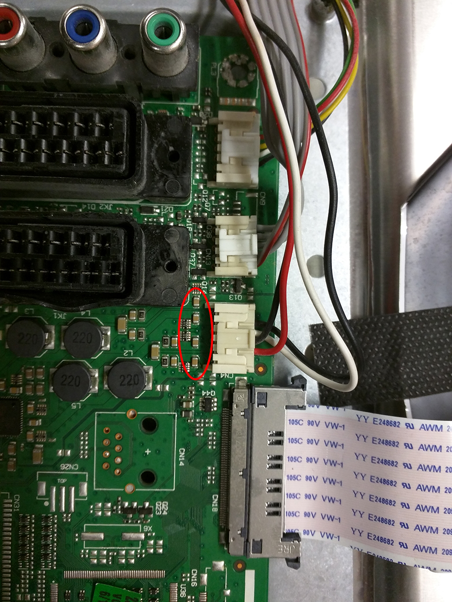 TV works great but no sound from speakers. Sound does come from the audio jack so no need to replace the audio IC. Done some research on this issue and the next issue can be those ceramic caps. Can someone tell me their values or provide a schematic?