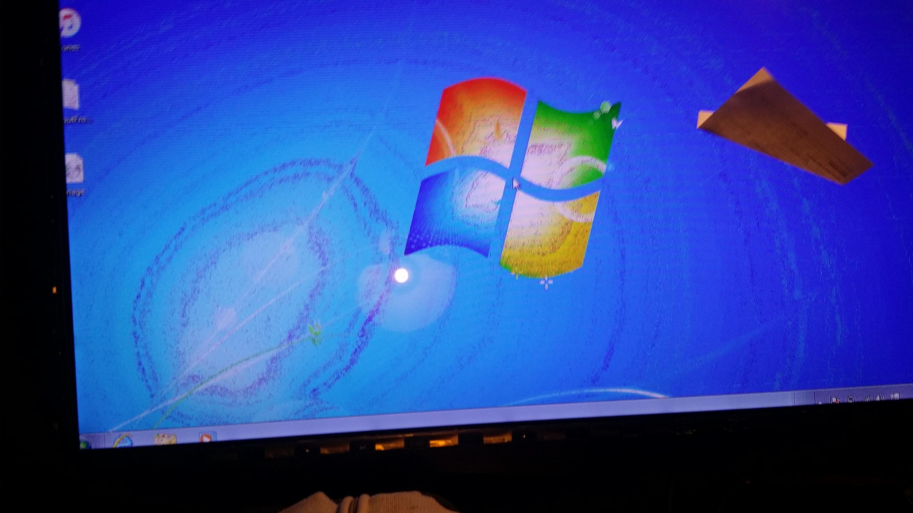 the way it is rippling out from a central point (at least thats what i think i see) makes it seem like something either hit the screen or bumped into it.