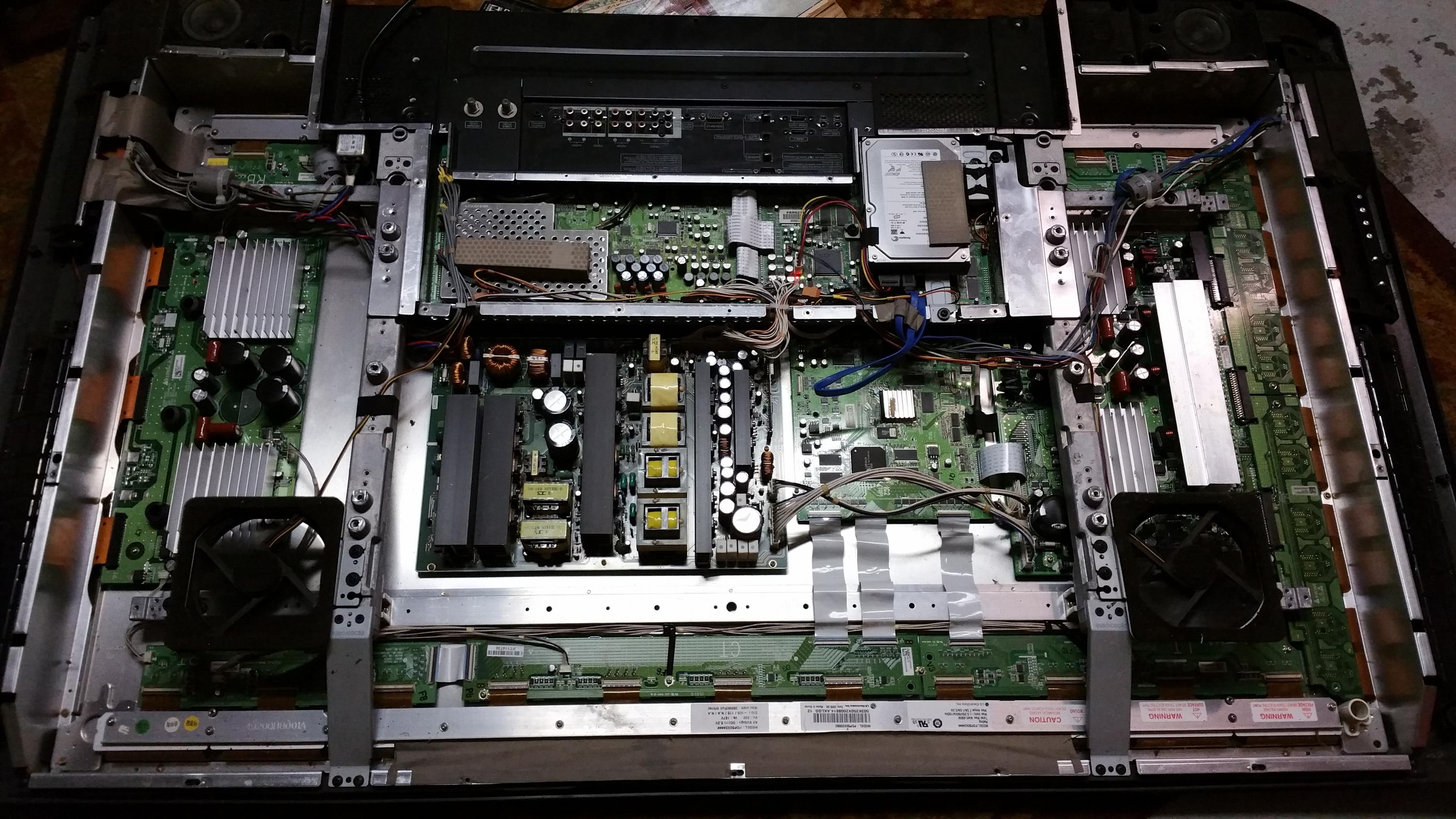 I recently obtained a LG 50PY2DR and when I first got it I replaced the Y board because image rainbow snow. That at least fixed the no picture but now I have a black square box lower left and 2 1in. Wide vertical lines running About 7in down from top and stop. I am aware that the plasma is separated into sections and driven by buffer boards. Both buffer boards been replaced with same issue. My question is will a defective Yand Z board cause these problems. I am thinking bad tab connection for the two lines but the square box has me boggled. Things I done