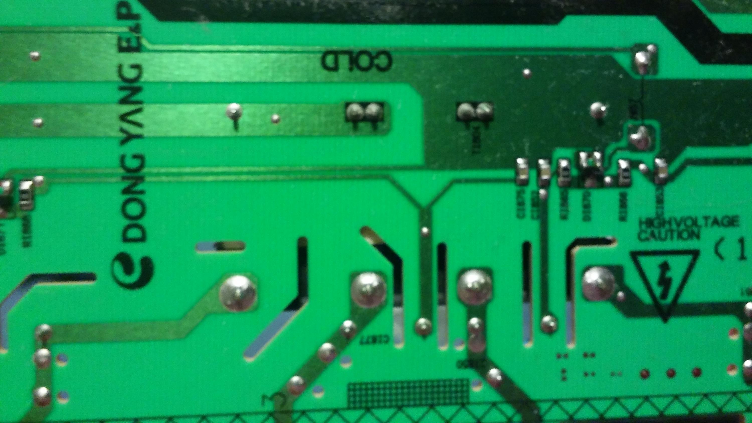 Few drops of water fell probably near COF and have no display. Tried removing tabs but no.part of display present as if tcon fuse open. However 12v is present and tcon can be felt warm enough that supplies are present. Backlight and sound ok.