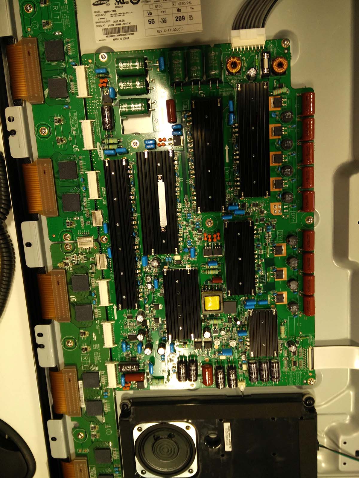 I've got a 63" Samsung Plasma TV model no. PS63C7000. Its was working fine but not its picture is very faint, you can make out menu boxes etc. I've tried a factory reset with no luck. I'm presuming its a faulty X-Sus or Y-Sus board. Anyone have any experience with this model ?
