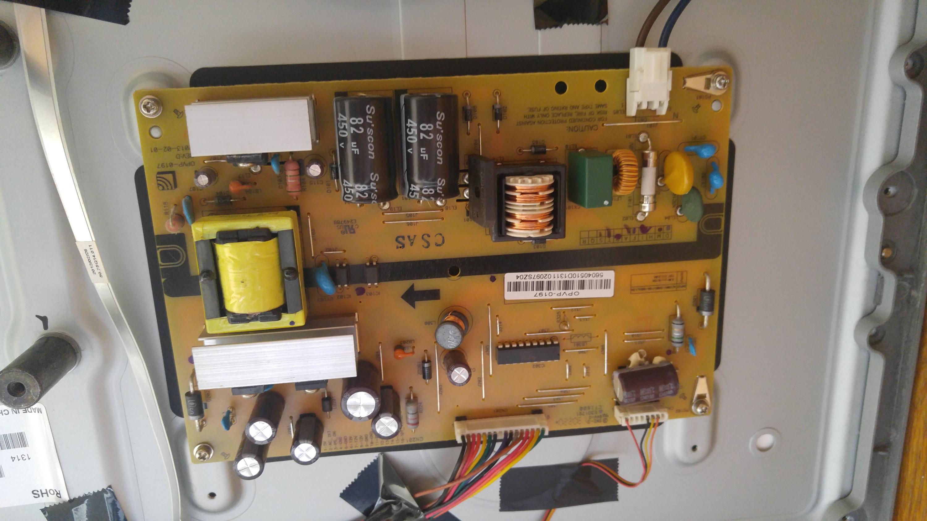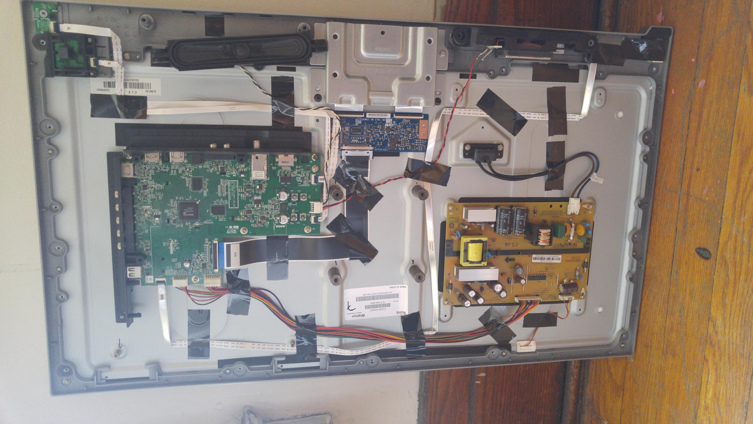 This is the TV This TV is a little different from the Samsung I have worked on. Power supply is on the Left side, Main Bd is on the right side, T-CON , not in the picture is on the bottom. I am assuming that the boards in the middle are the LED... -