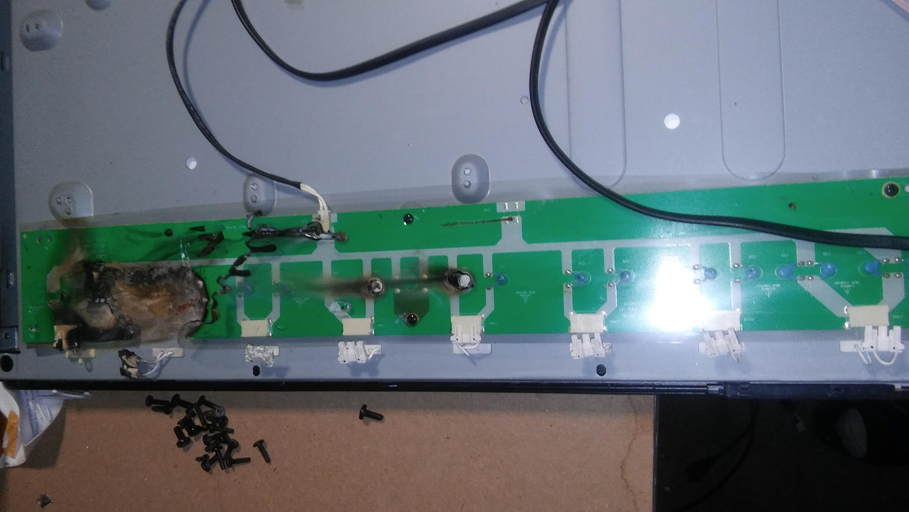 Well got this tv from someone said it smelled when plugged in and doesn't display the input well took the back cover off and even though I am far from an expert I believe that this board was not supose to look like this