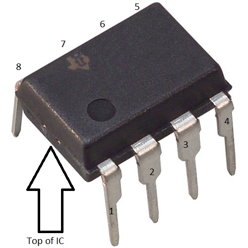IC's normally have a dimple on the top. To the lefthand side of the dimple going anticlockwise gives you the pin numbers.
