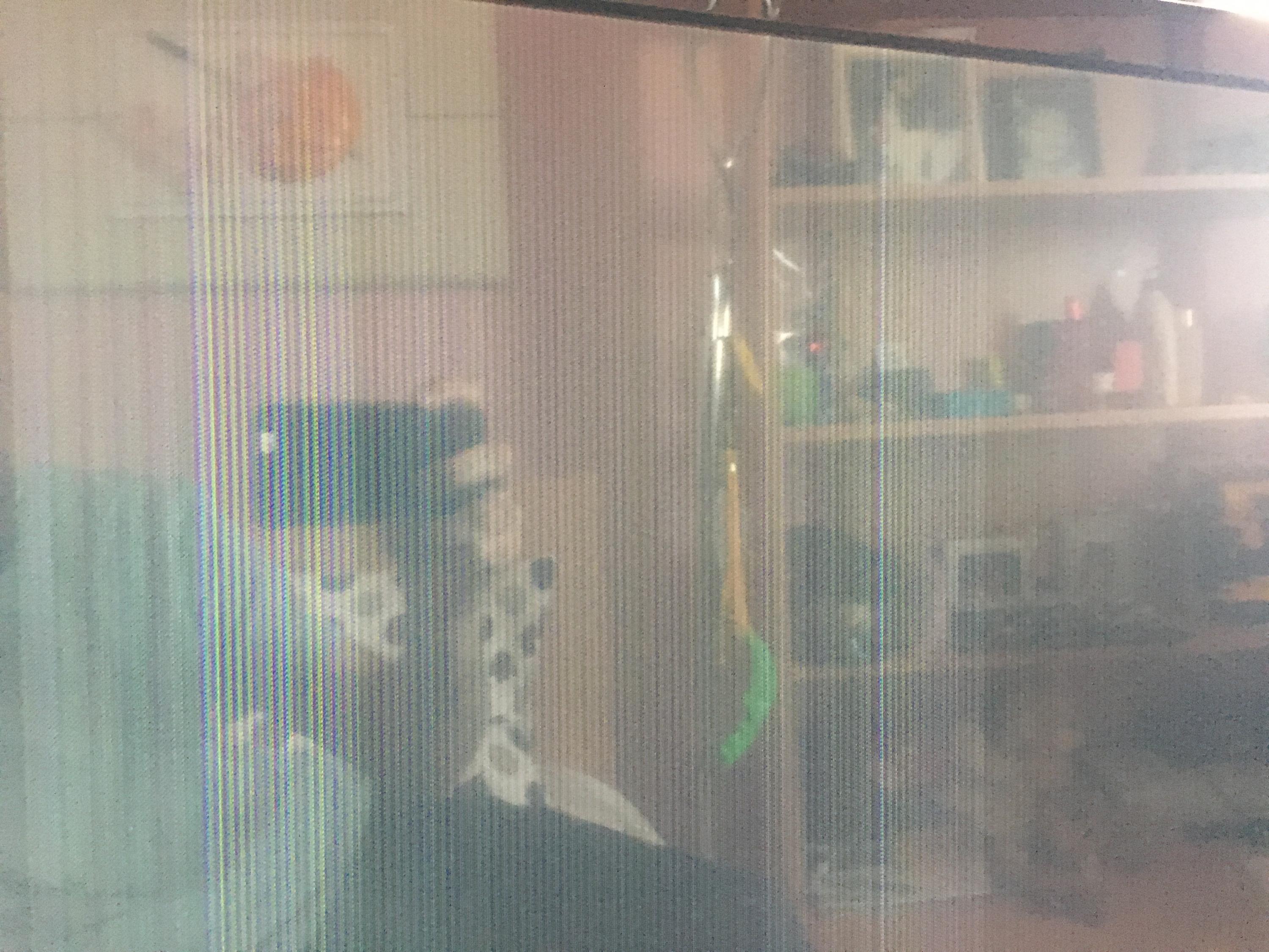 I've had this issue with this TV since December and it's driving me insane at this point. At first there was a big/wide vertical stripe that was overlayed on top of the image. Then a few days later, the TV stopped showing any picture at all. It even looks like it's not responding to button commands but I have no way of verifying that. Now the only thing the TV shows are the vertical stripes pictured in the images below.