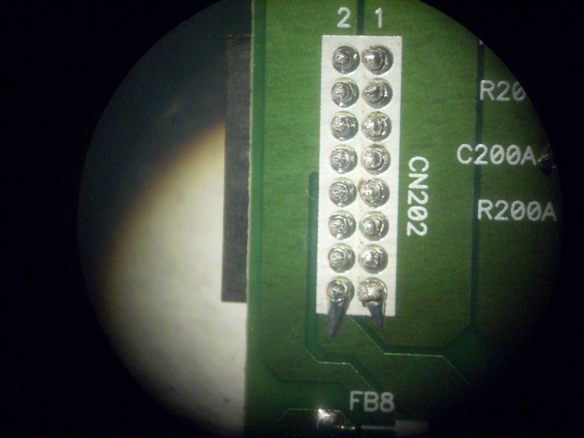 Removing the PS board revealed that the backside of connector CN202 had EVERY SOLDER JOINT FRACTURED!
