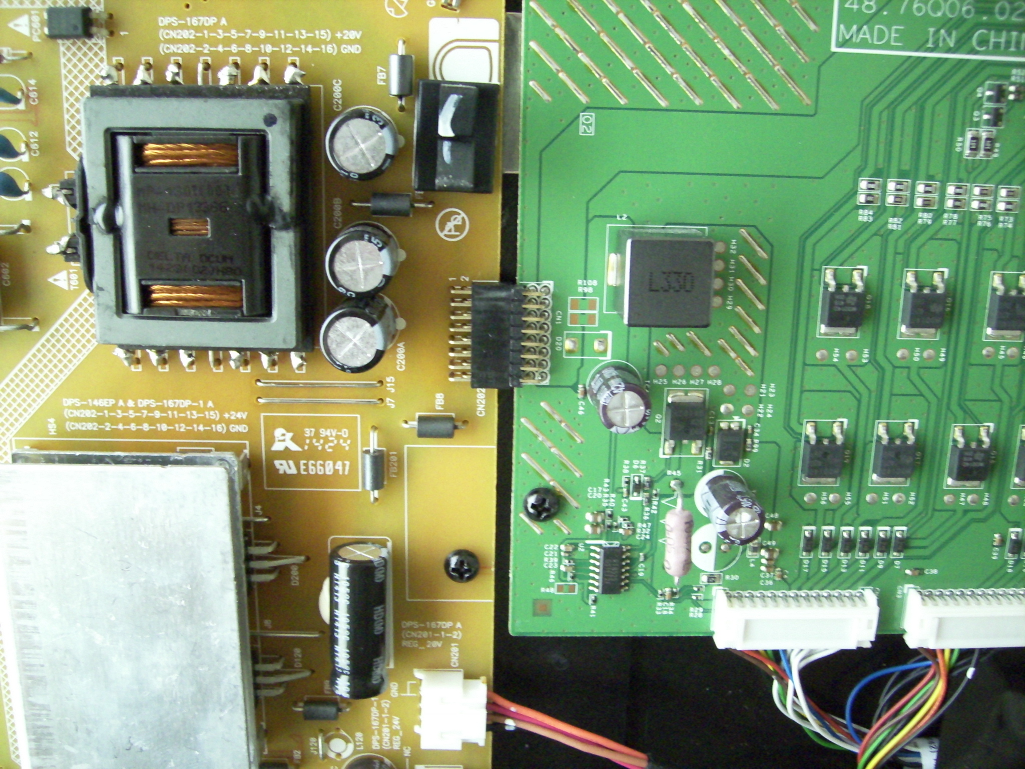 I recently acquired a 55" Vizio Smart TV with intermittent video (actually, no backlight). The previous owner said that it would work for a while, then NOT work for days. When I brought the TV home, everything was working properly. After a few days, the backlight just went dark. A check of the power supply showed ~21V being properly output - but not getting to the LED driver board - connector CN202 had no voltage on it.