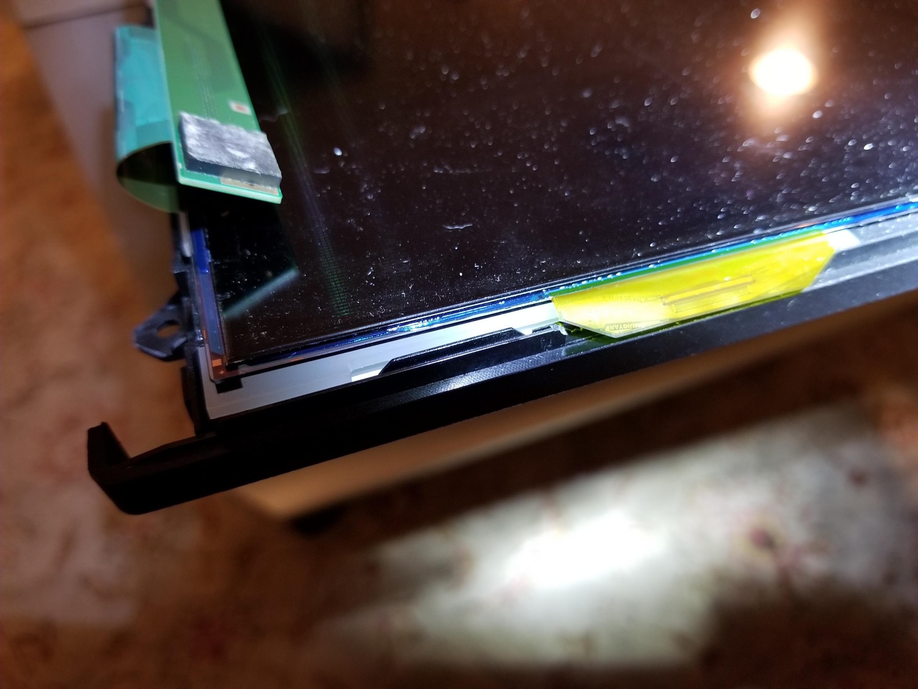 You still haven't posted a picture of the display showing the resulting screen with the tcon cable disconnected. You might try comparing both ends of the bottom edge boards (ie. right and left sides) and see if you can spot any differences that might point to a bad component that might be replaceable.