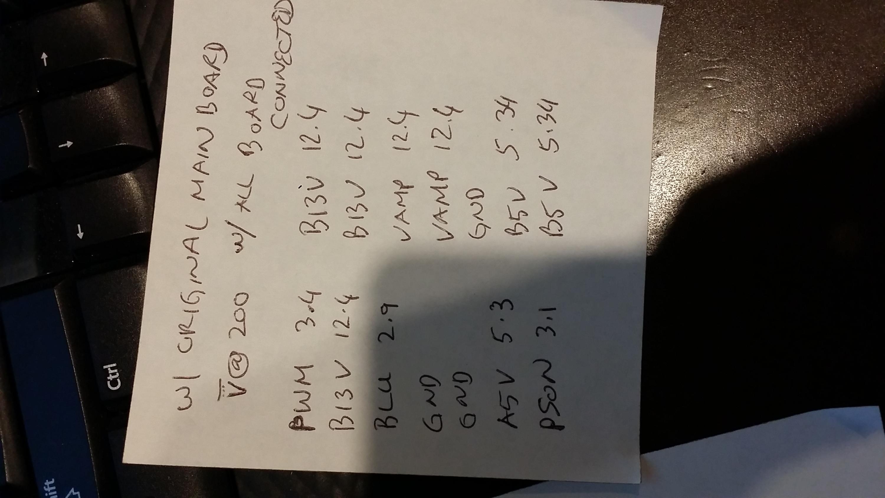 If you use the old main board, with the t-con all plugged in correctly (I believe from your previous posts this would result in no backlight or anything, correct?) Are all the voltages at the power supply 0v then or are some higher?