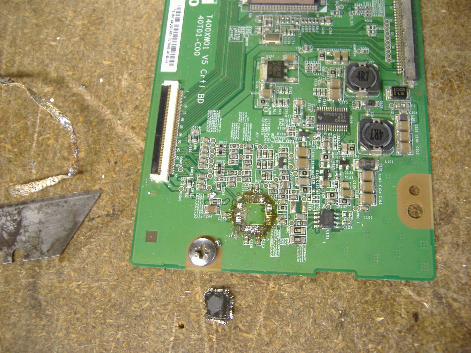 Photo 5 New chip & in background ic's location with a thin smear of Fry's Flux.