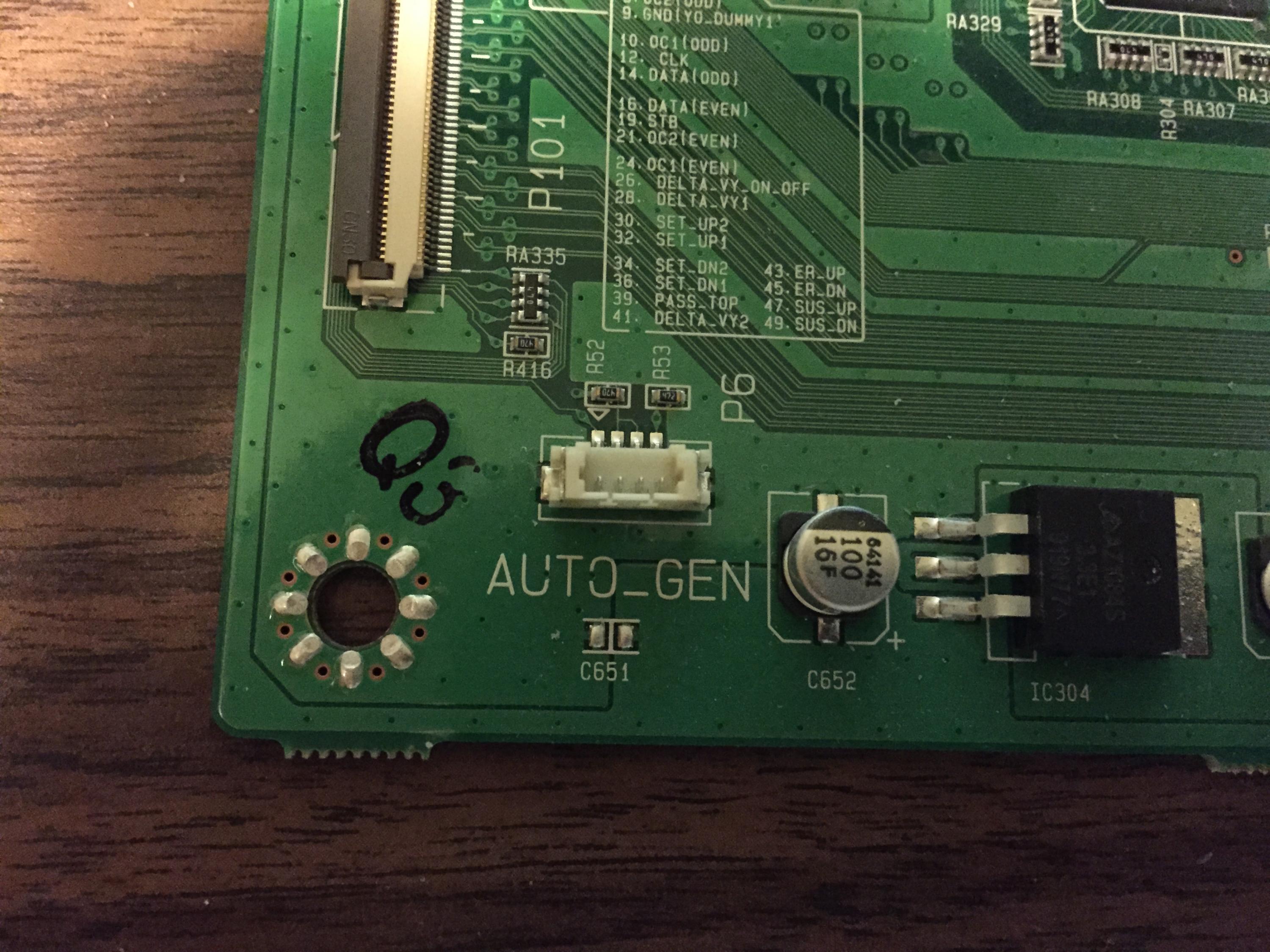 The upper buffer board arrived today. Upon installation, the tv worked perfectly and the upper part of the screen was back to normal. The bad news is it worked for 3 hours or so and then the picture went out but I still had sound. Restarts didn't help. I then unplugged the tv and left it for an hour or so and pulled the back cover back off to have another look. I then powered on the set and the picture came back for a bit and then went out again after a few minutes.