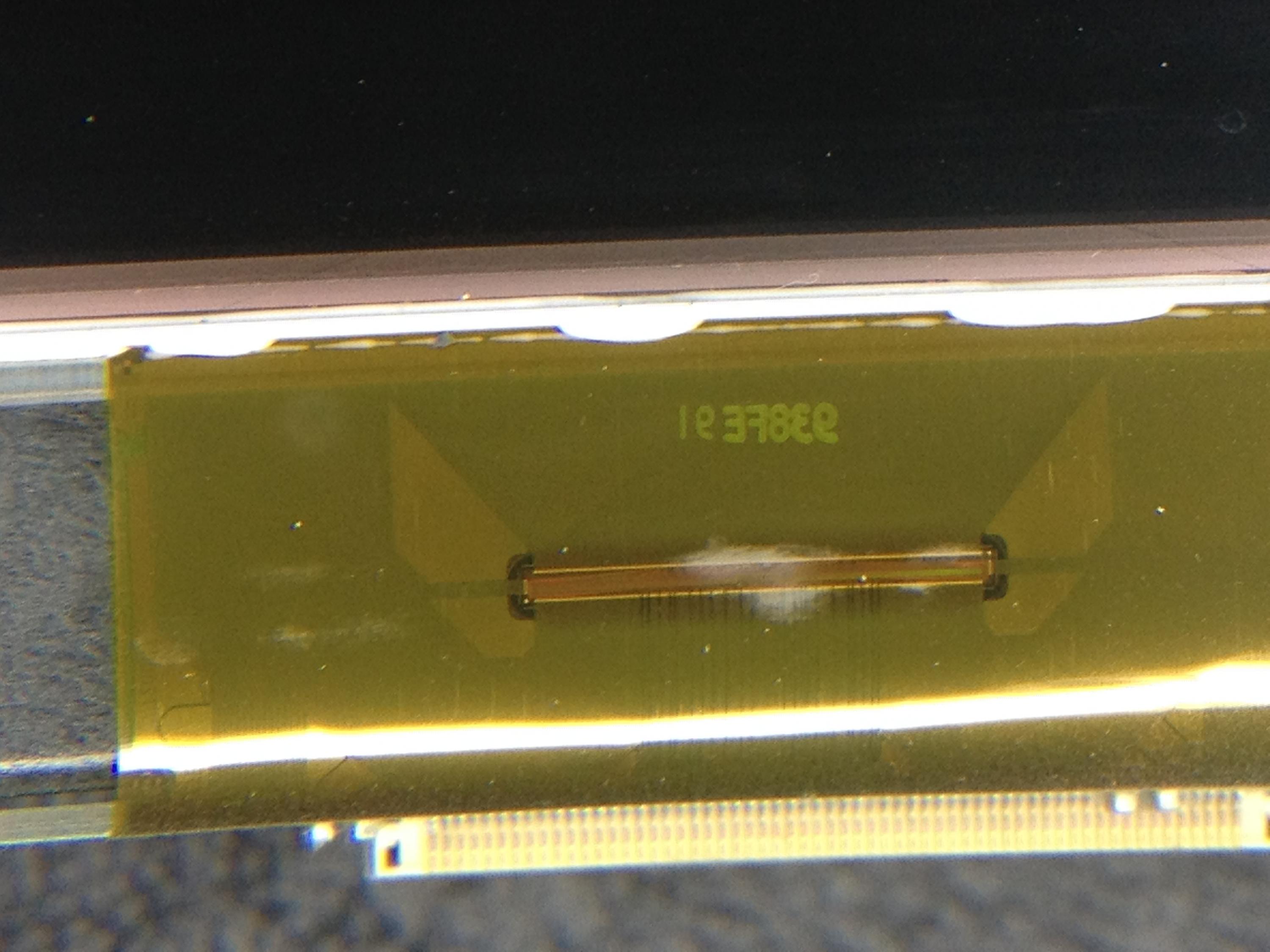 So I capitulated and started checking voltages -- a real drag without schematics! Everything looked OK except AVDD which was around 1.2V. With the ribbon cables to left and right panel disconnected from TCON, that value read 15V... OK something going on here. Left ribbon cable connected (right side of screen) AVDD = 1.2V, no picture. Left ribbon cable disconnected and right ribbon connected, AVDD = 15V and left side of screen works OK. So something is going on with the right side of screen. There looks like a few MLCC parts along the lower PCB "strip" connecting the right side of panel that are between AVDD and GND. A few diodes, other MLCC parts, resistors, etc. Nothing is shorted though, I read about 20K from a DMM with the panel disconnected between AVDD and GND on the strip itself. Also OPEN in one direction and DIODE in the other with DMM set to 2K/DIODE position (as far as I can tell both left and right panels read the same here). The tabs look OK too, at least as far as I could tell. The TCON board has an LED marked VREF which lights and stays lit when only the working side panel is connected (with OK video on that side). When reversed and the "bad" panel is connected, the LED lights momentarily then goes out. The picture also comes on briefly on the "bad" side then fades to dark as AVDD goes down -- which takes about 2 or 3 seconds from power on.