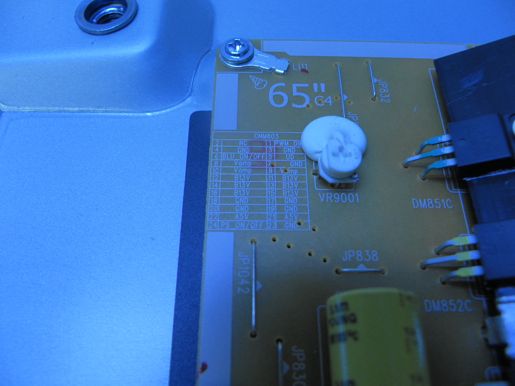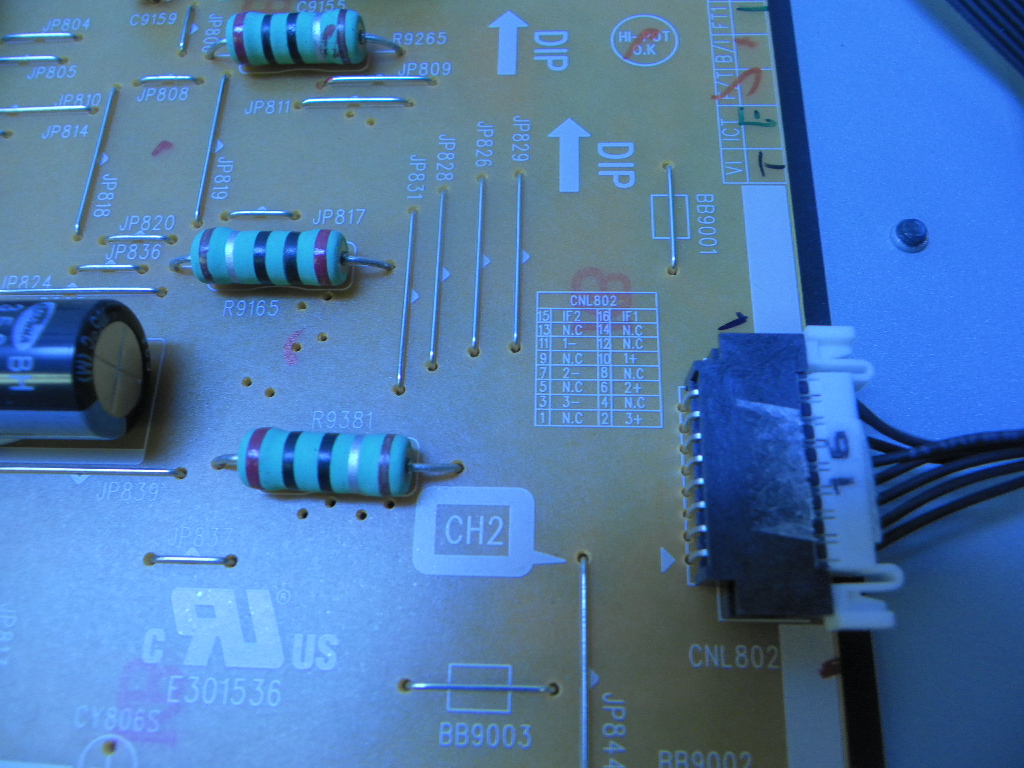 5 .9v 11 thru 15 13v 21 5v 8 thru 16 are 13v 22 is 5v and 24 is 3.5v all others are 0v. CNL802 2 thru 10 are 126v 3 thru 7 are 8v and the rest are 0v. I am thinking the main board may have taken out the tcon so I need both but would like some input before I tell the customer.