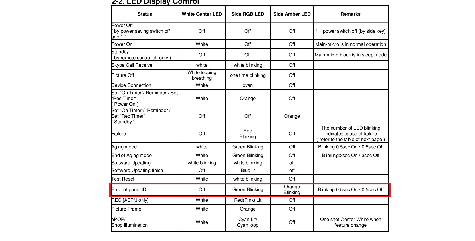 My Sony W905 started to turn itself off an on every few minutes and blinking 8 times red in standby. A few minutes later the tv was completely dead.