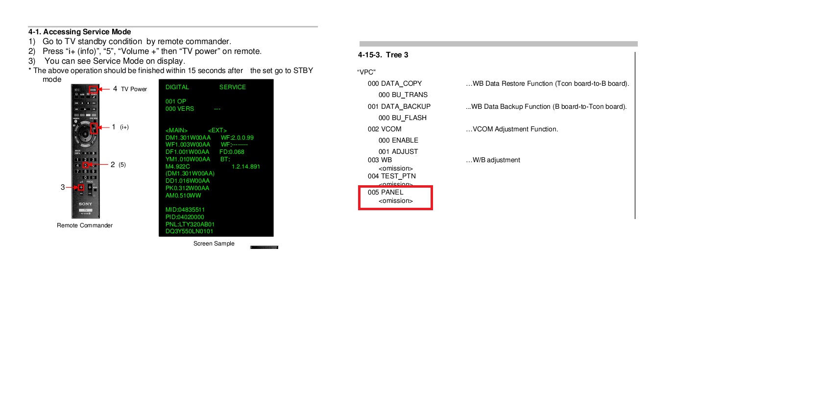 service mode... Press “i+ (info)”, “5”, “Volume +” then power on