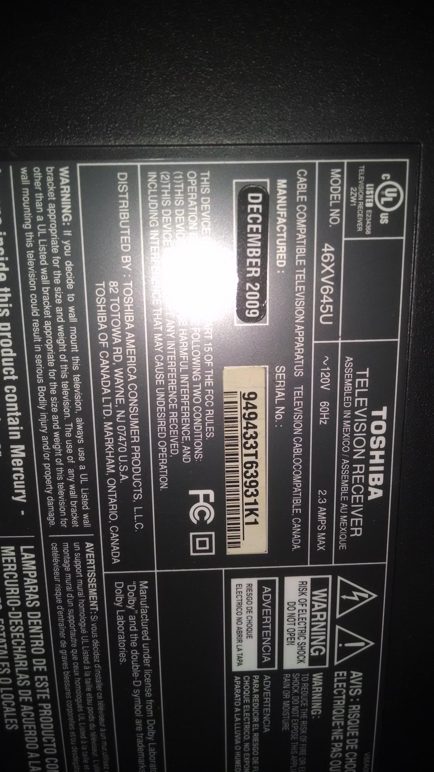 Toshiba Regza 46xv645u won't turn on, blinking power led