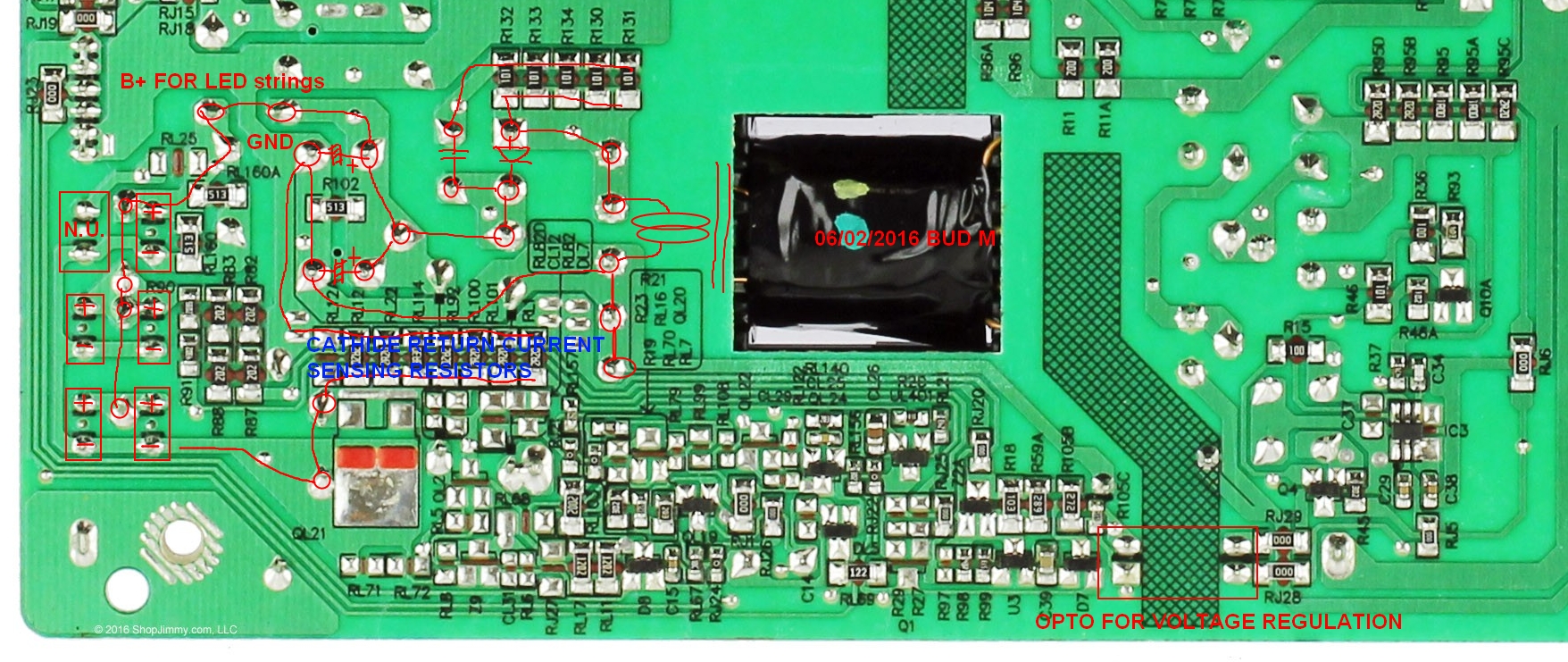 We need good clear pictures of the power supply/LED driver board top and bottom side and especially around the LED connector..