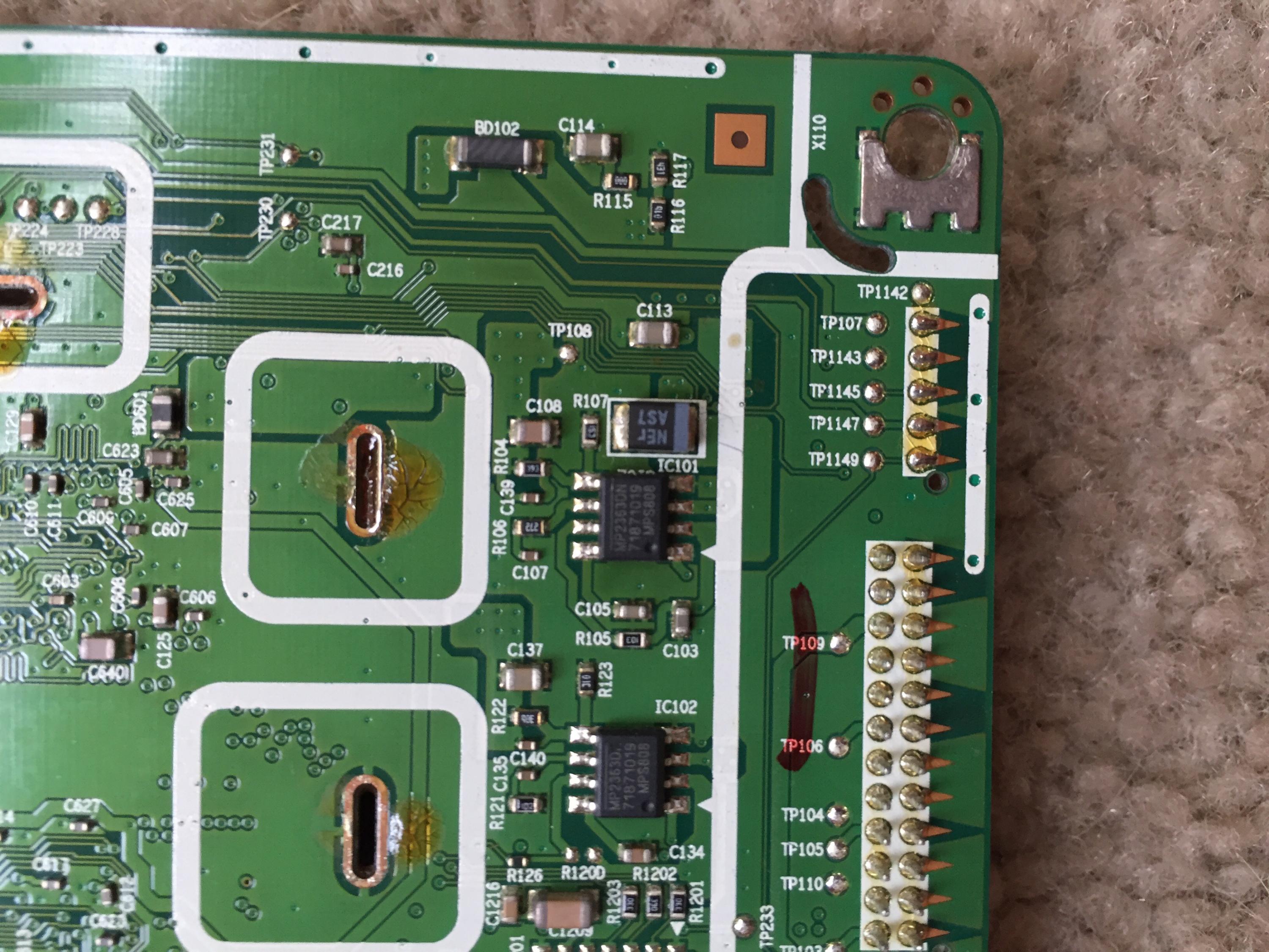 On the bottom of the board there capacitor isn't labeled C102 but it's in the position that it shows in the pictures of other posts.