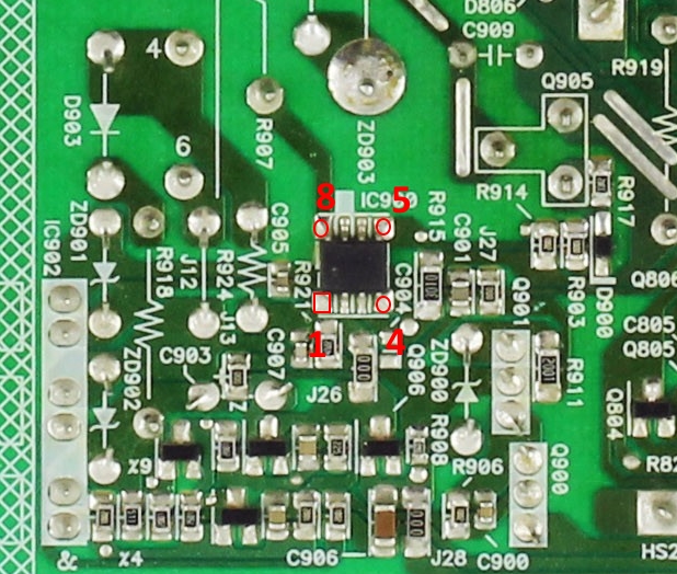 Pin 8 is connected to resistor R907, pin 5 is connected to R914.