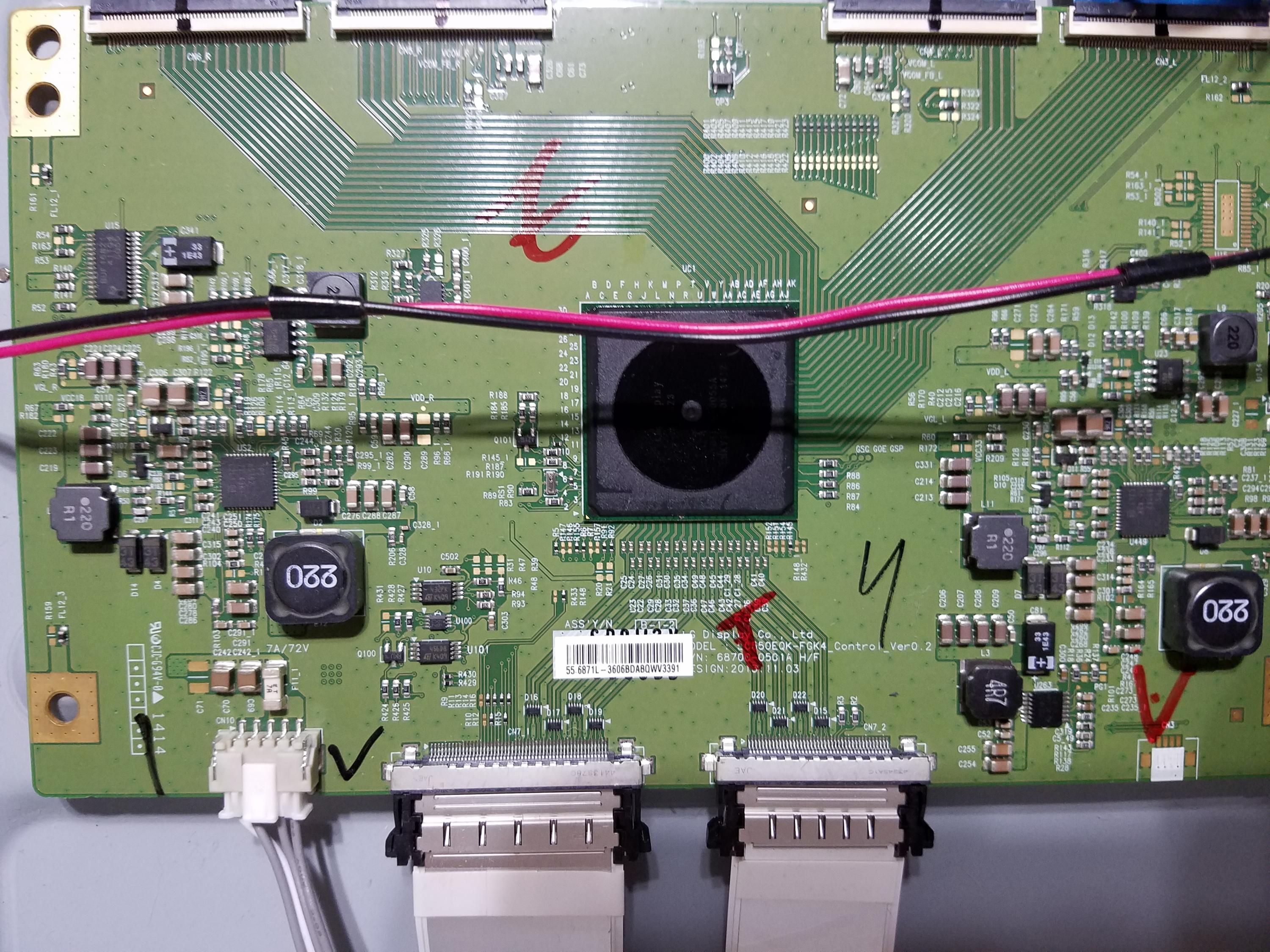 2. Disconnected the main T-CON ribbon cable → same issue as before, the LED still blinks 5 times.