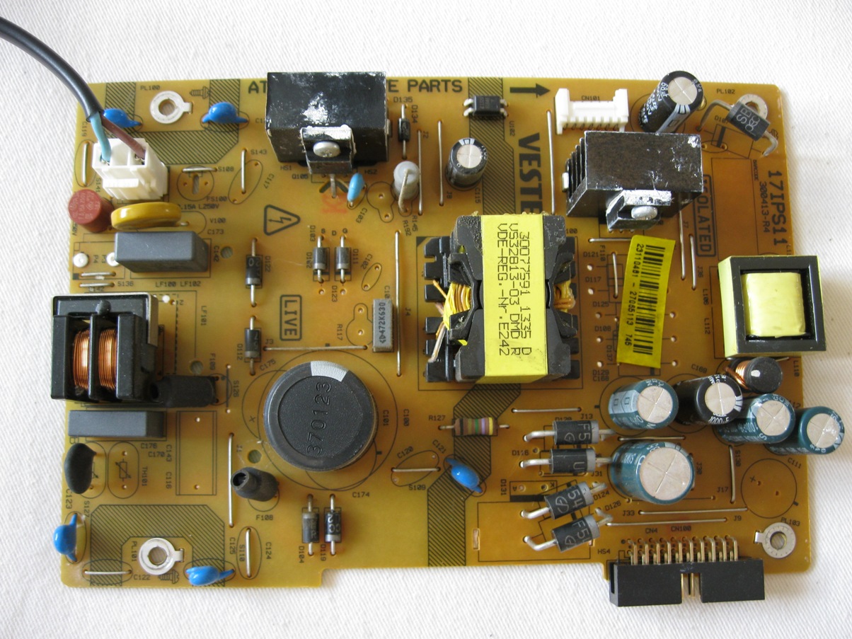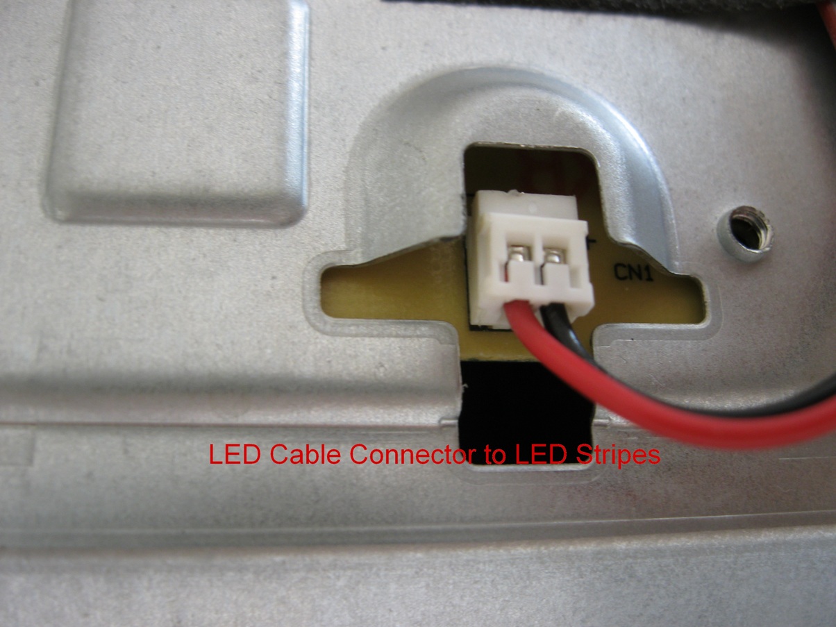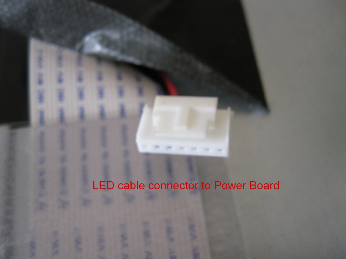 Apparently there is no separate LED Driver Board, because the LED strips directly are connected with a cable (red/black) to the power board. My measurements showed that in standby is close to 1.1 Volts.