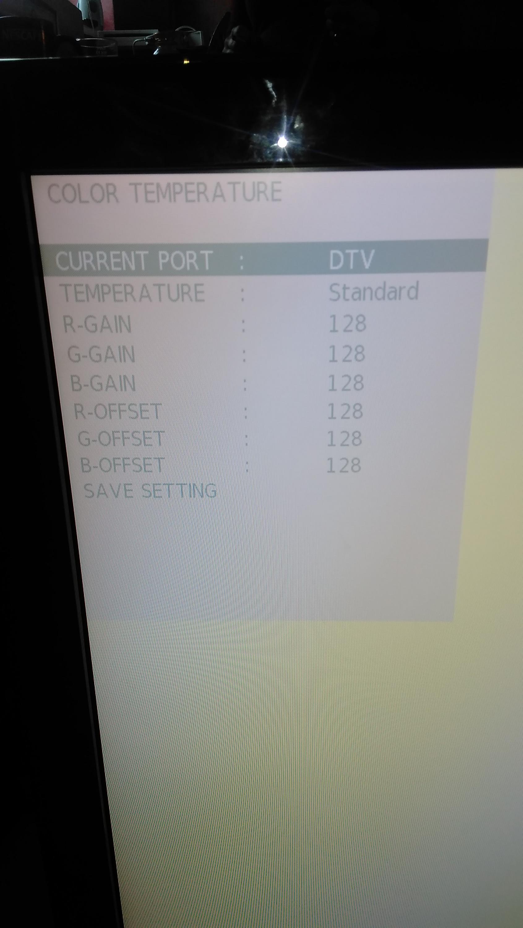 However, Now the screen appears to be extremely bright pinkish white. Can still see the image displayed on screen, the picture seems like a negative.