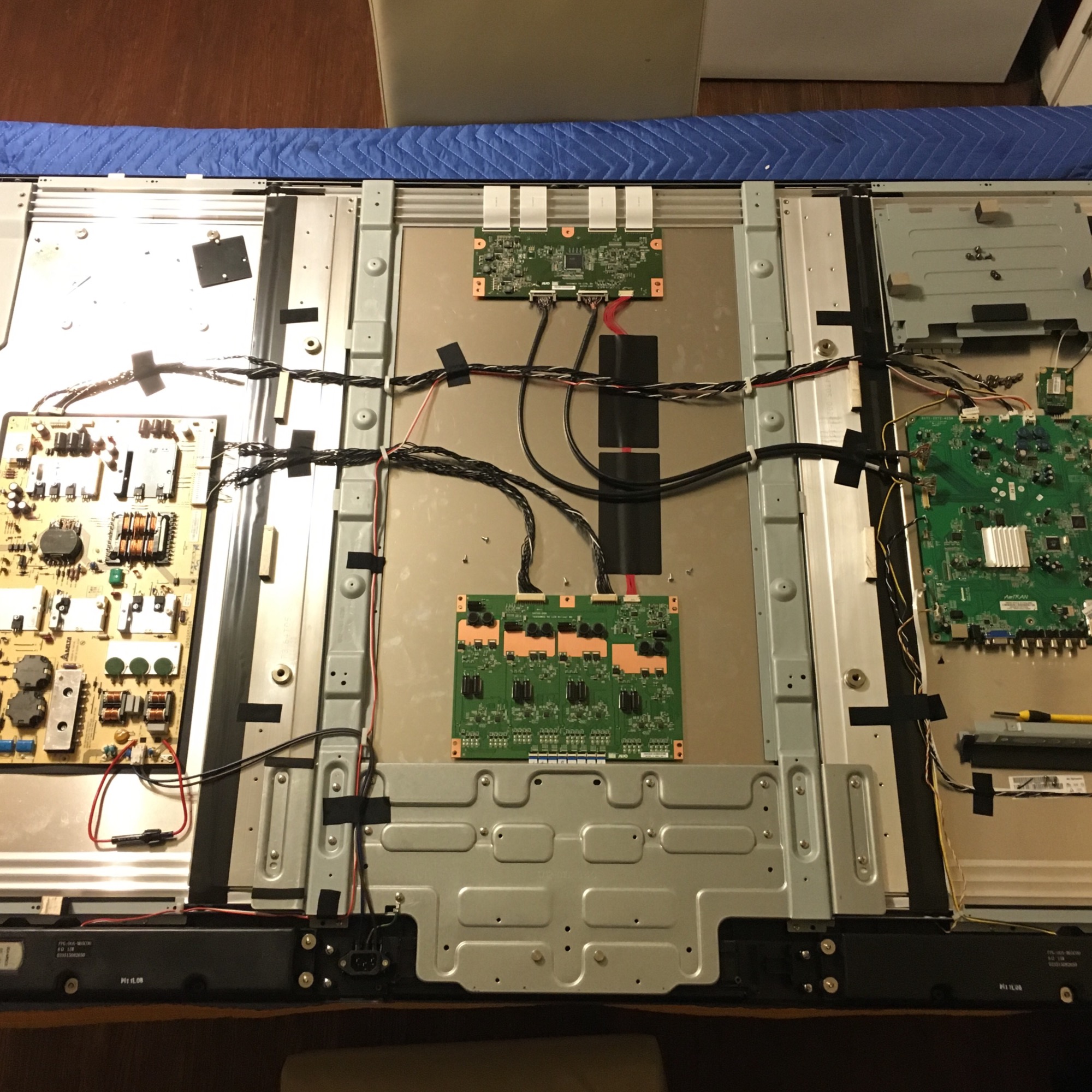 Hello guys. I have a vizio M3d650sv that was in a house struck by lightning. The tv logo will not light up. Hitting the power button does nothing. I checked the standby voltage and there is 5volts going to the main board. I have checked diodes, resistors, and some capacitors. I also put 3.3v on the remote pin and get 12v, 18v, and 24v on the other pins. However, at the lower part of the board, i hear a faint clicking aound every couple of seconds. As long as that is normal, then i assume the issue is in the main board. I am lost at what to do next. I cannot find any schematics. The power supply board is available, but the main board is not anymore. The power supply board part# is a Vizio 0500-0507-0920 (delta ps DPS-353AP). The main board part# is Visio 3665-0042-0395 (AmTran 3665-0042-0150(4b)) sn: LATAMEAM5001515.