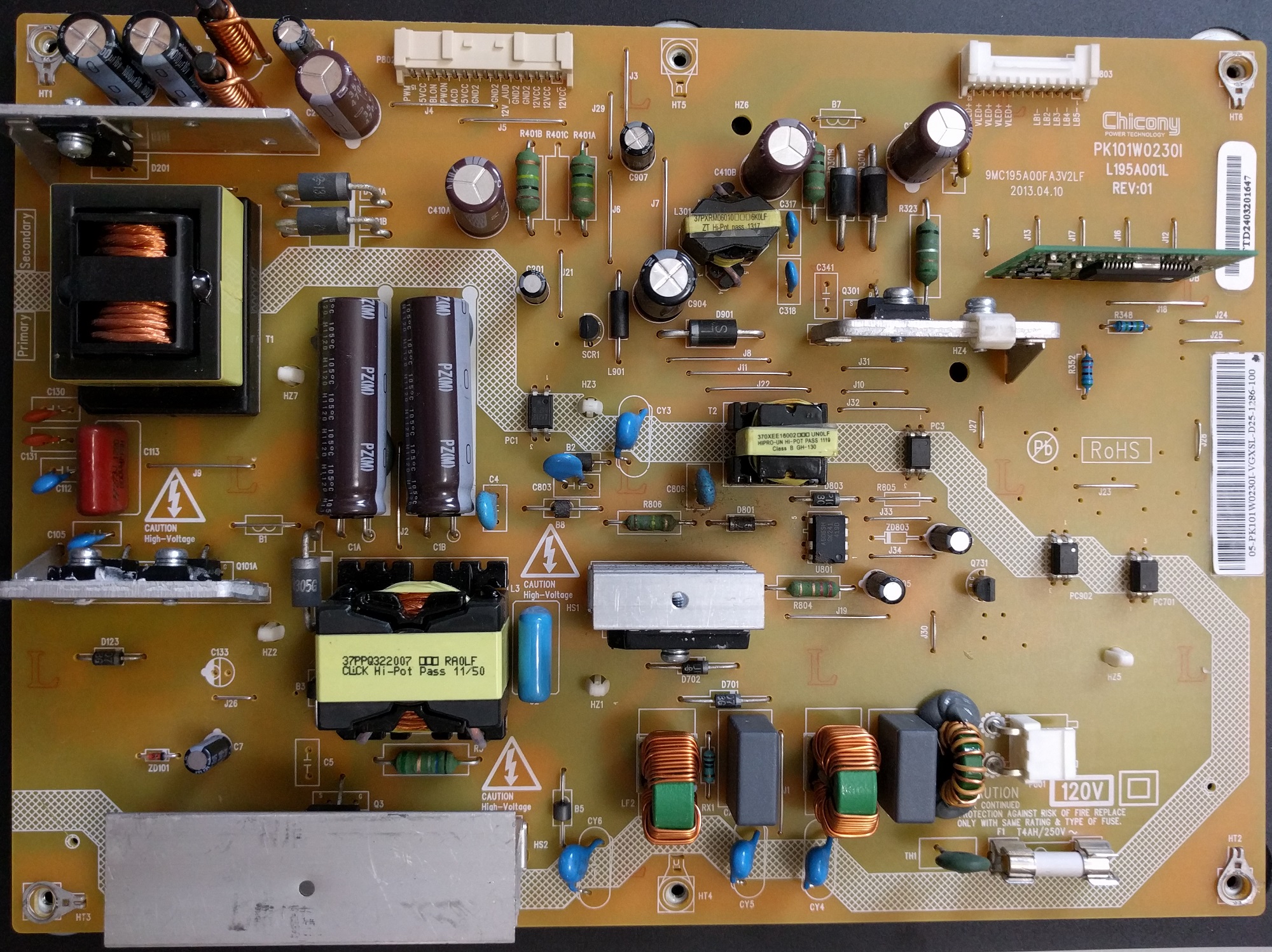 I just bought a Toshiba 58L4300U TV real cheap because it appears to be dead. It does not power on at all. I was hoping I would find some bad caps or something easy to fix, but no luck there. All the caps and other components look fine to me physically.