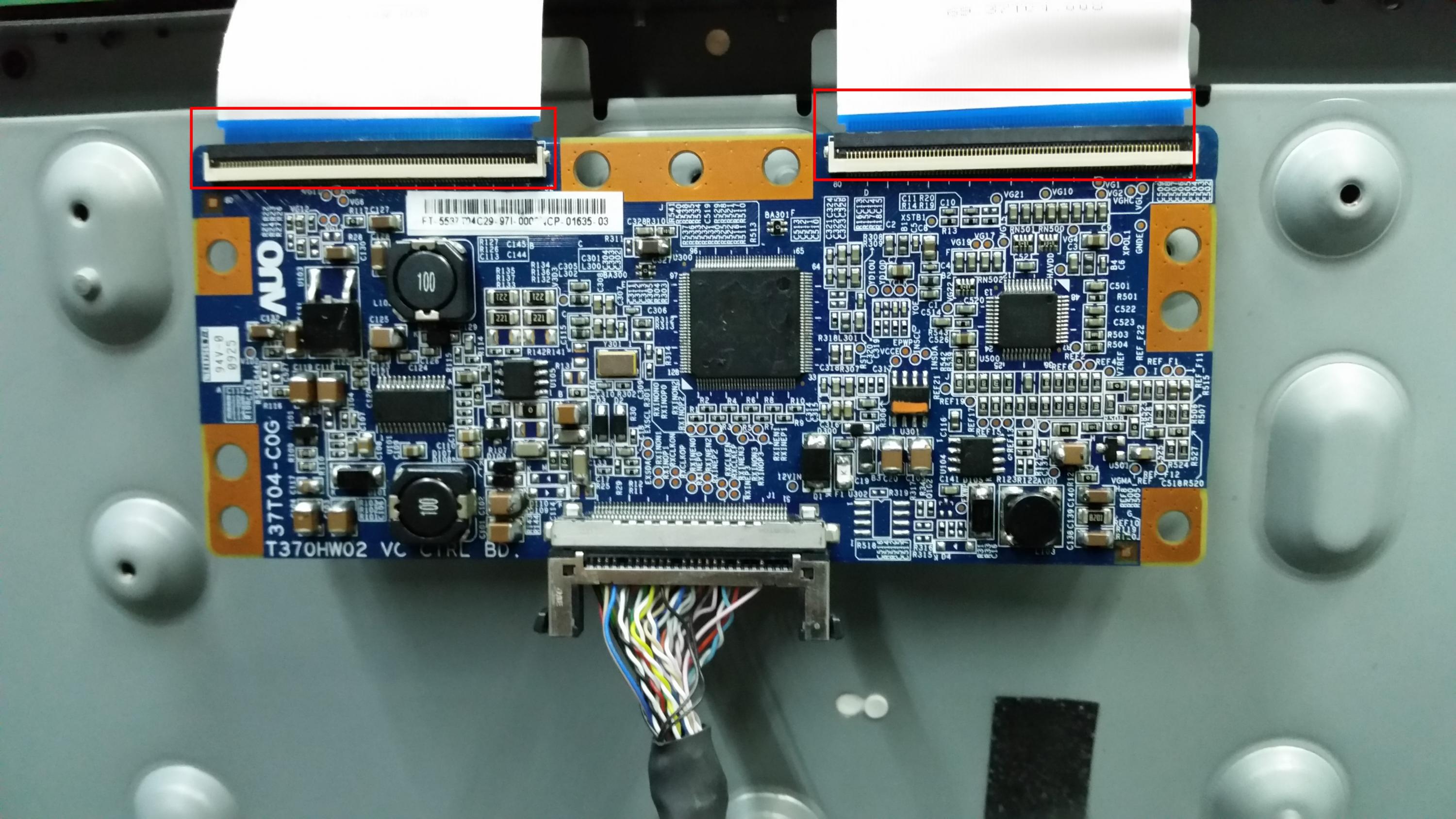 I can see that the flex cables between the LCD panel and the T-CON board are in crooked and half way in! You don't see that?