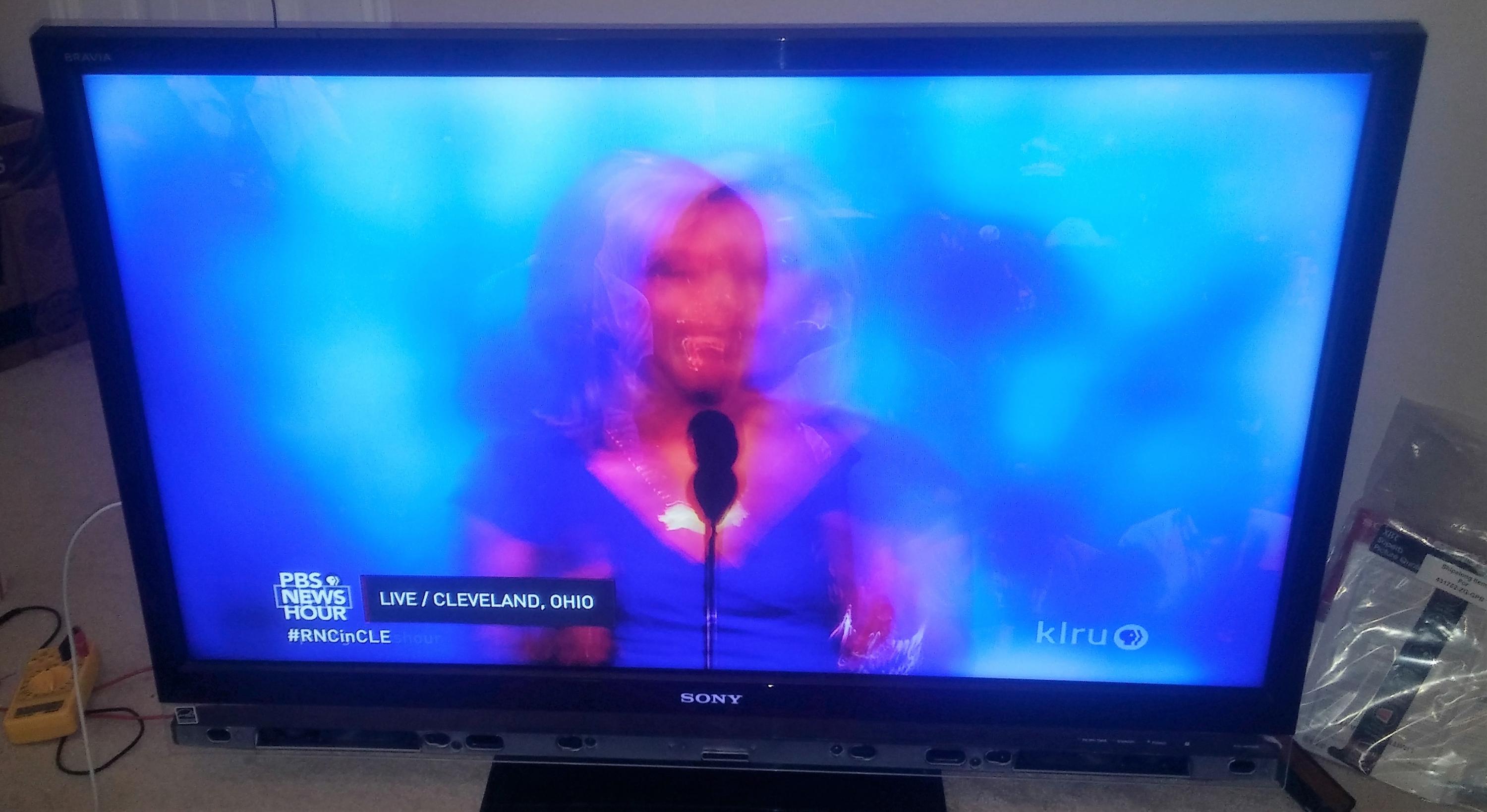 I've been troubleshooting a Sony with rainbow vertical lines and no picture. With HDMI input, my source would appear every tenth line or so.