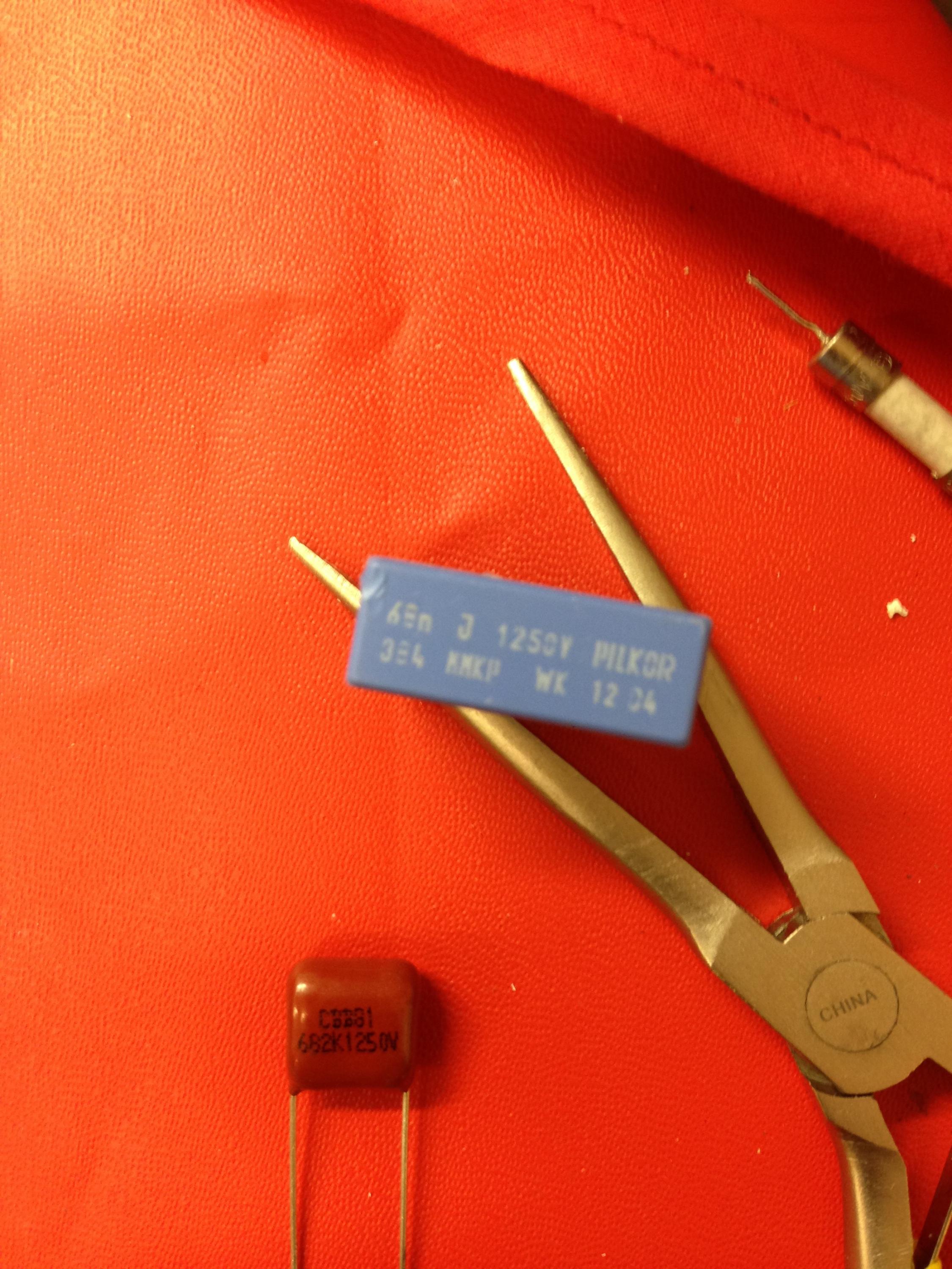 I got to CS825 and I was sent a wrong capacitor, that I also think is incompatible, but wanted to ask if anyone can advise. CS825 OEM is a Pilkor MMKP 384 PCMP 1250V, 68nF box-type (22.5mm). They me some random plastic dipped 1250 V cap that is only measuring 7nF...