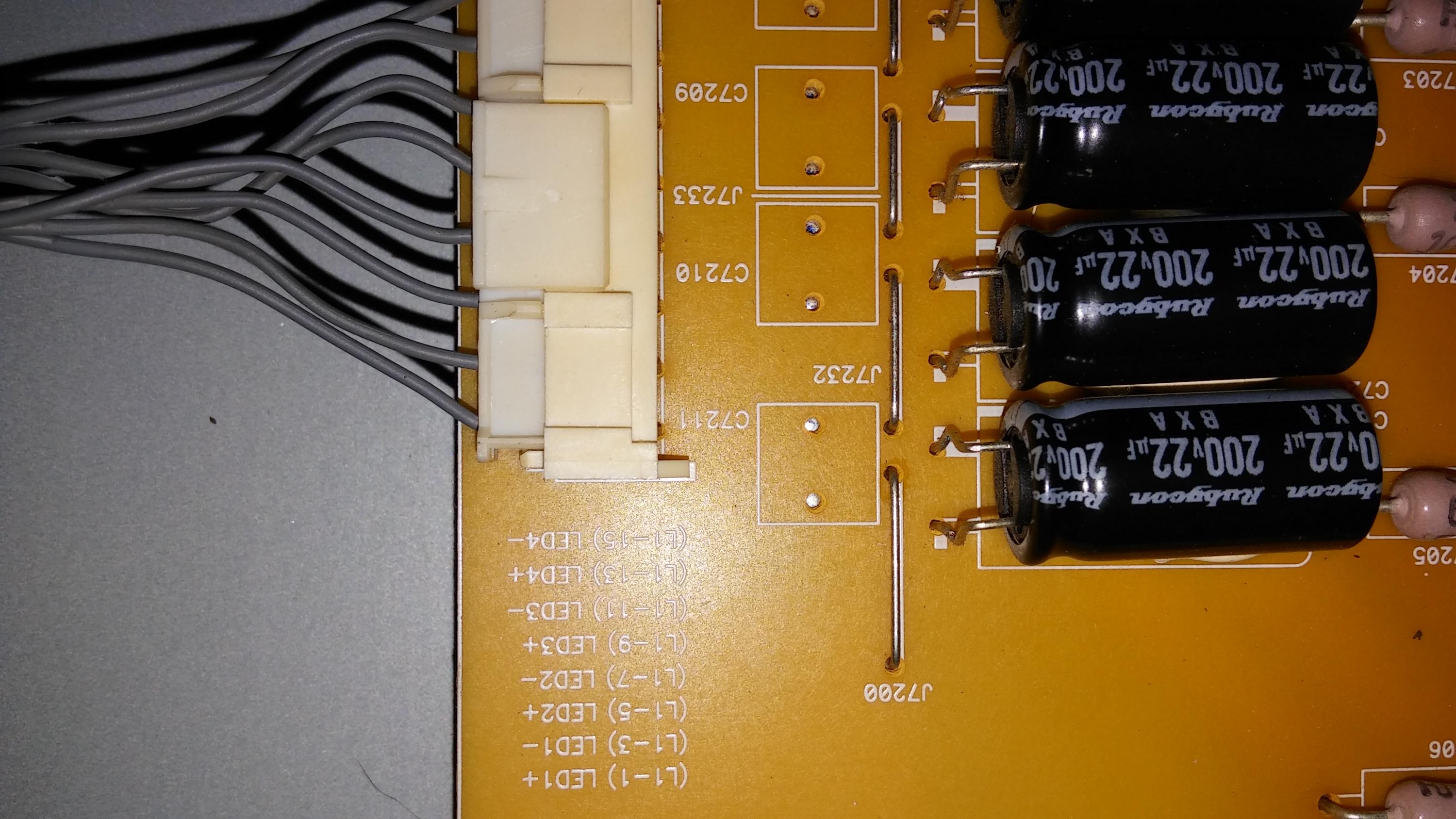 Well got a sanyo...plug it in and got blue light then one flash of the leds...then blue light out....did get a power supply and a main board from ebay..still nothing same thing..is it possible got one string of leds out and it will not respond because of that?...hate to take the front apart to see...looks like from the power supply i got 8 strings of leds...can i disconnect it and add some battery power to each strand to see if a strand is out...what voltage?...i got no codes from the tv...may have got bad boards from ebay just dont know..
