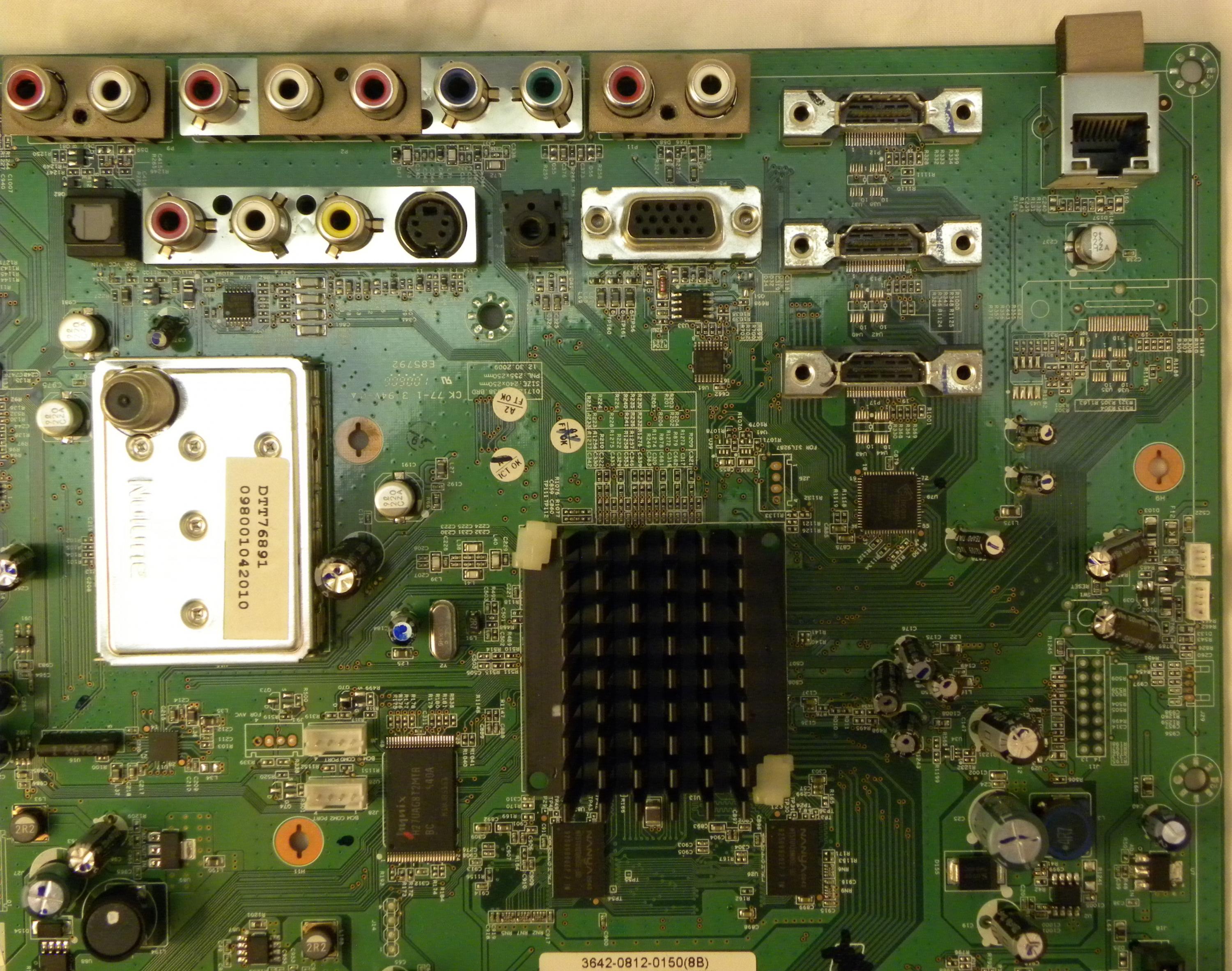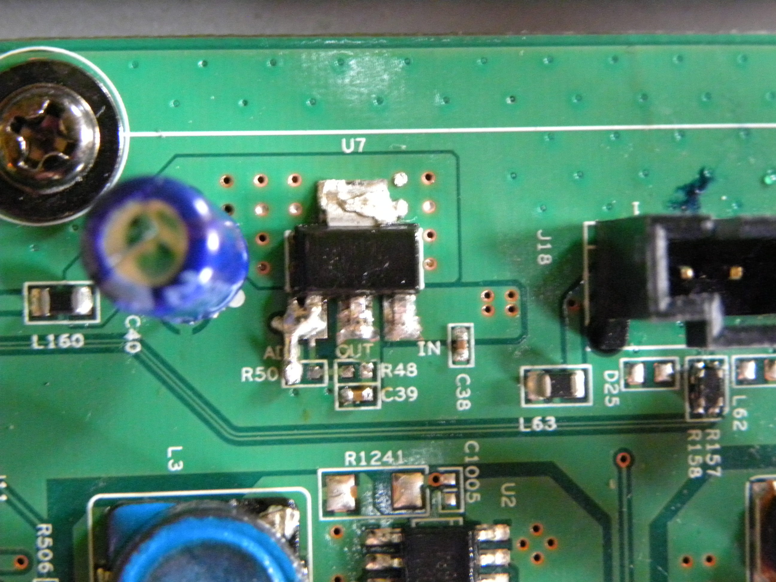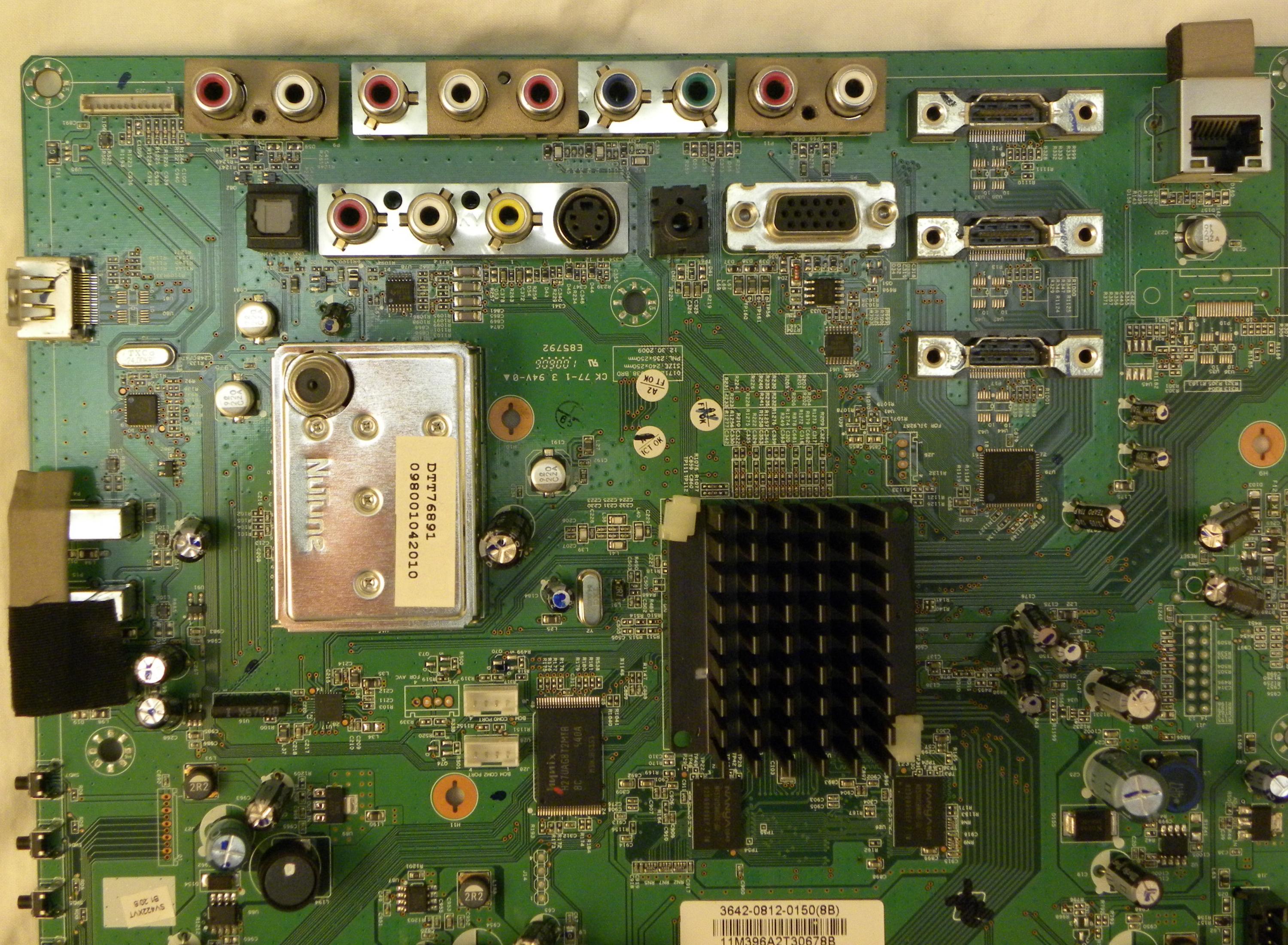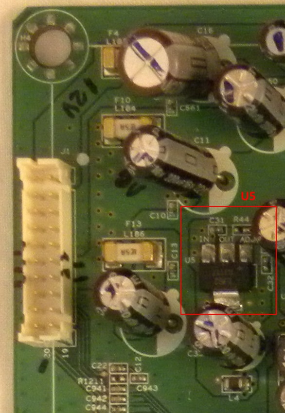 The tv lit up and I got the V logo and the menu on the screen. Woo Hoo! I hooked up a coaxial antennae cable and got a beautiful HD picture and sound. Did the happy dance! I leaped to the conclusion the problem was solved especially since Vizio has a reputation for bad LDO Voltage Regulators, buttoned it up and put it back on the stand.
