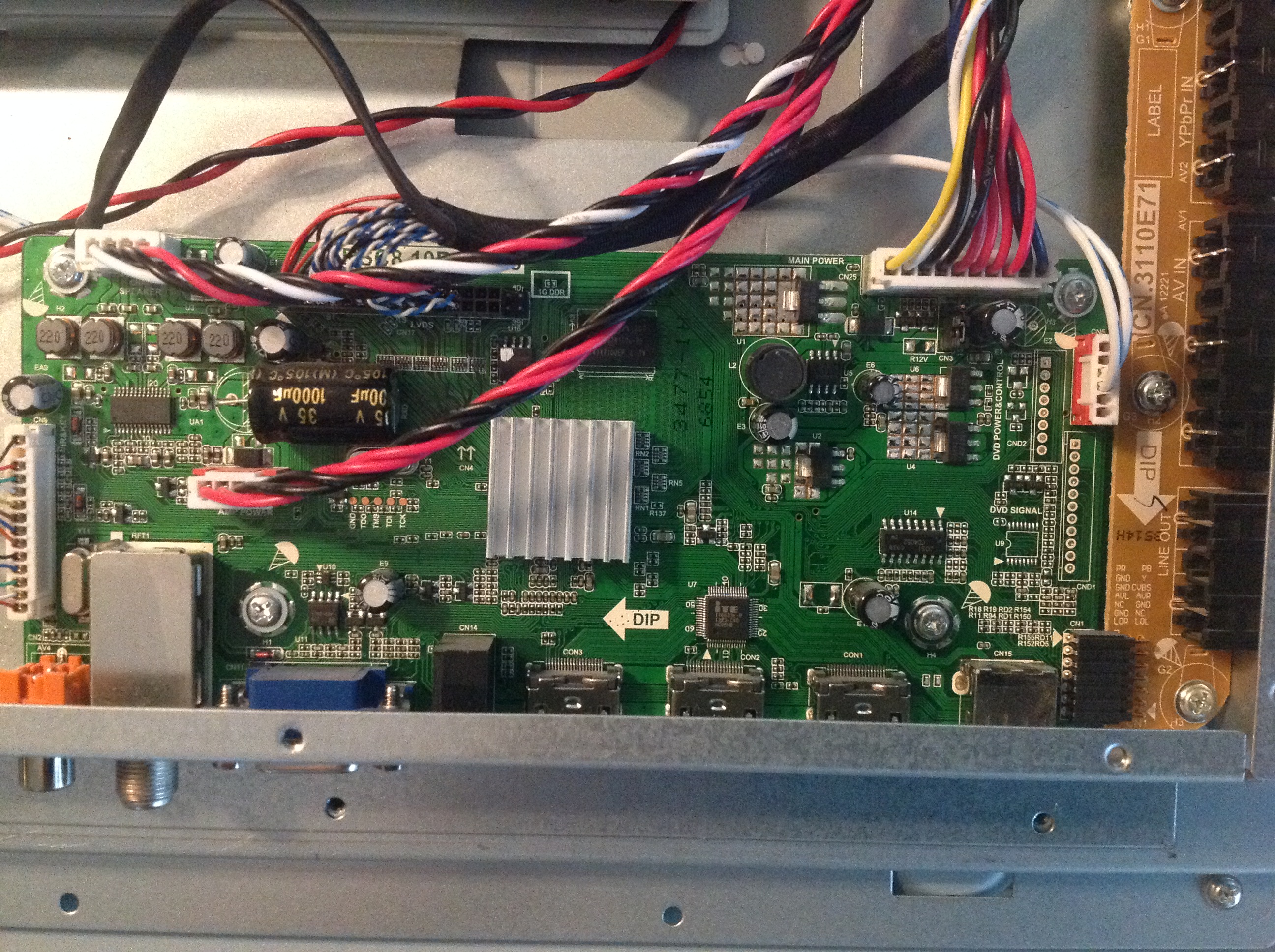 I just got this tv today and it appeared to have no backlight on. After taking off the rear cover and checking again in the dark I can see that MAYBE one quadrant is lit.. But still it's quite dim. I was going to check the LEDs with my tester, and I found LED 1 and LED 2 + pins on the wire from the inverter, but I couldn't identify a ground. Nonetheless I tried using a mounting screw on the inverter board and also the chassis as ground but regardless my tester reads 300 which is what it reads when there is no voltage draw.