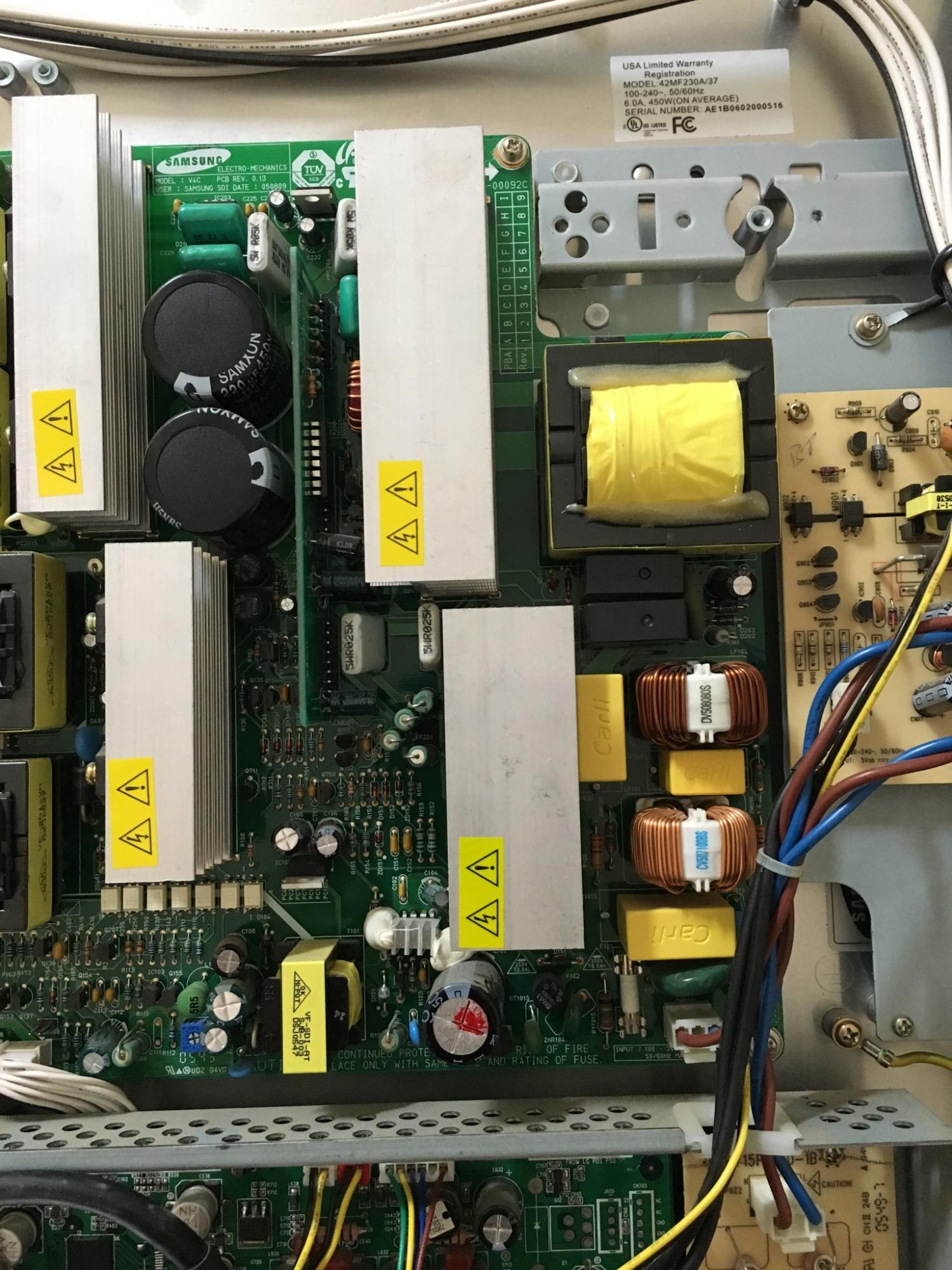 Any other ideas? I'm pretty sure it is probably a cap issue on the power supply but don't want to randomly change them, there are a lot of them. On a side note all the boards and panel are labeled Samsung.