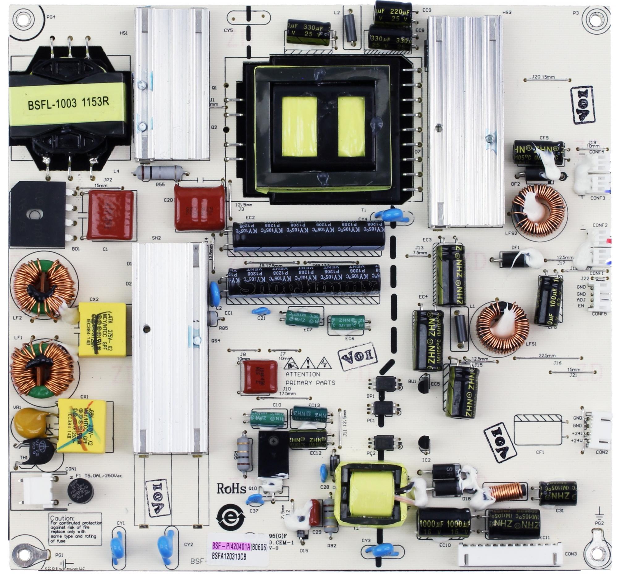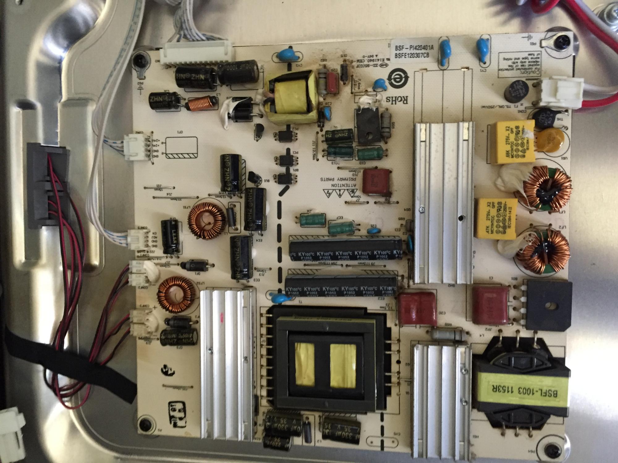 I measured the voltage between the two big caps and it reads 167vdc, either with the mainboard connected or not. I believe from set experience it should read about 400v correct?