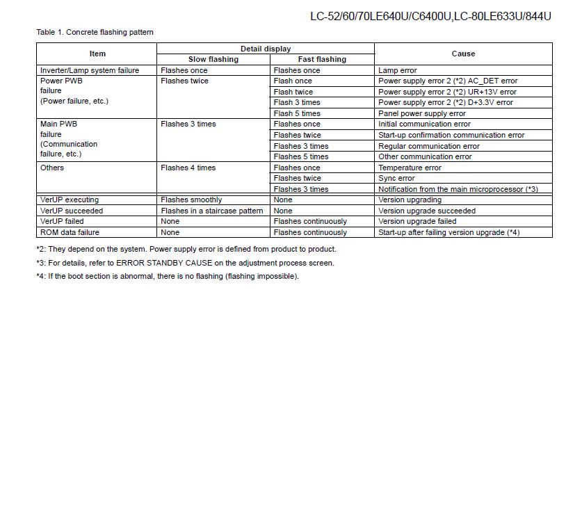 Re: Sharp LC-60LE640U 1 long, 1 short blink