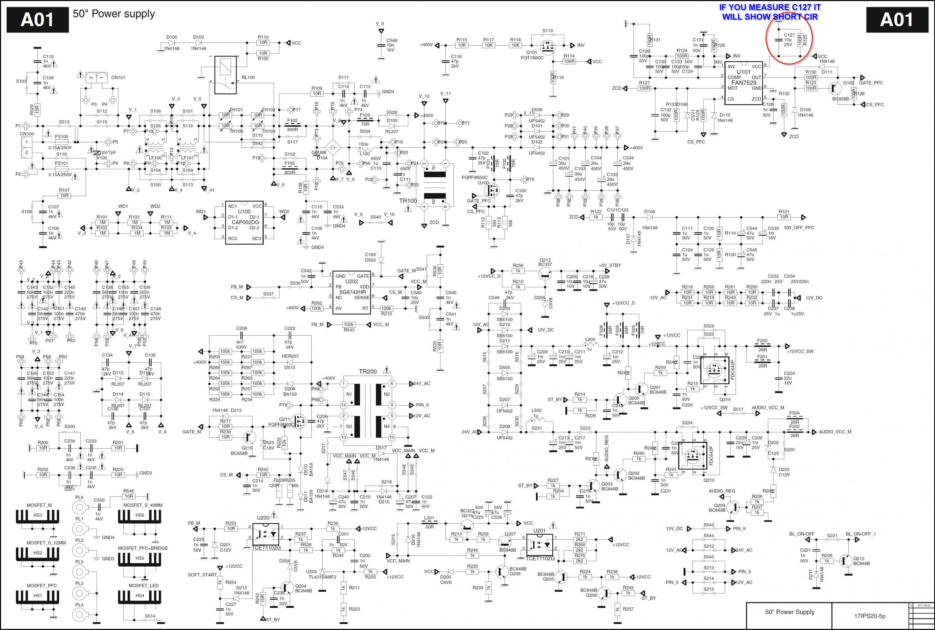 Sorry for bringing up this old Post,but I have a problem with the board...it had no power whatsoever,so I found the dead 8n60 fet,I believe it's q301,replaced it ,and it started,but was blinking fast standby led...so I flashed new firmware via USB,but flashed wrong one so the picture is upside down,but with no backlight...I do have 115v at the caps for backlight,but 0v at the backlight connector...both fet are not s/c ,smd resistors are all ok...what could be the problem?mp3394?but the voltage exists at the caps...so I'm stuck at the moment with no ideas