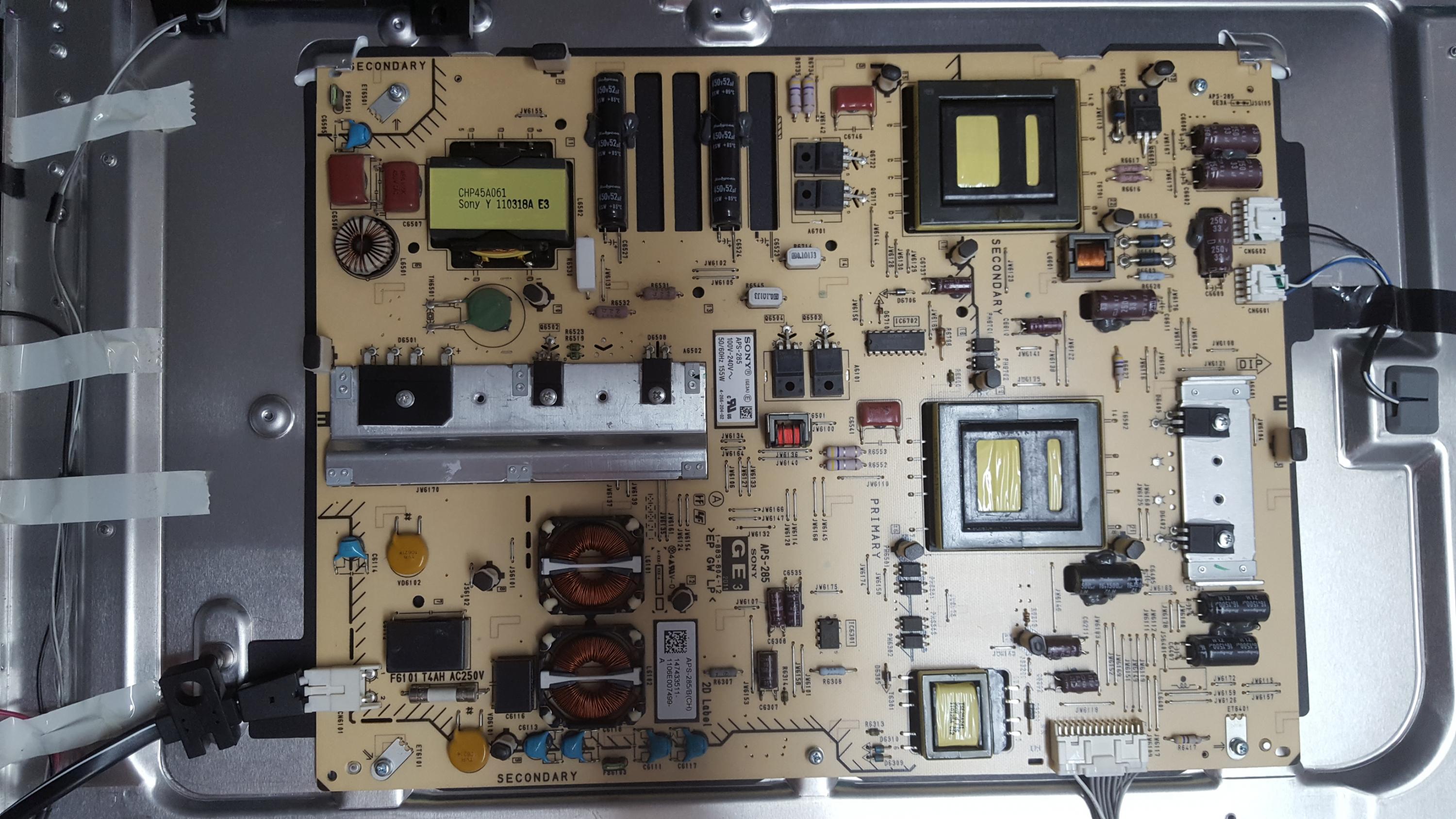 Sony KDL-40EX523 turns on and off just fine, back-lights are there, but I see no picture. I do see one 1 pixel wide white line on screen, all the way on the right edge of the screen, very first column of pixels.